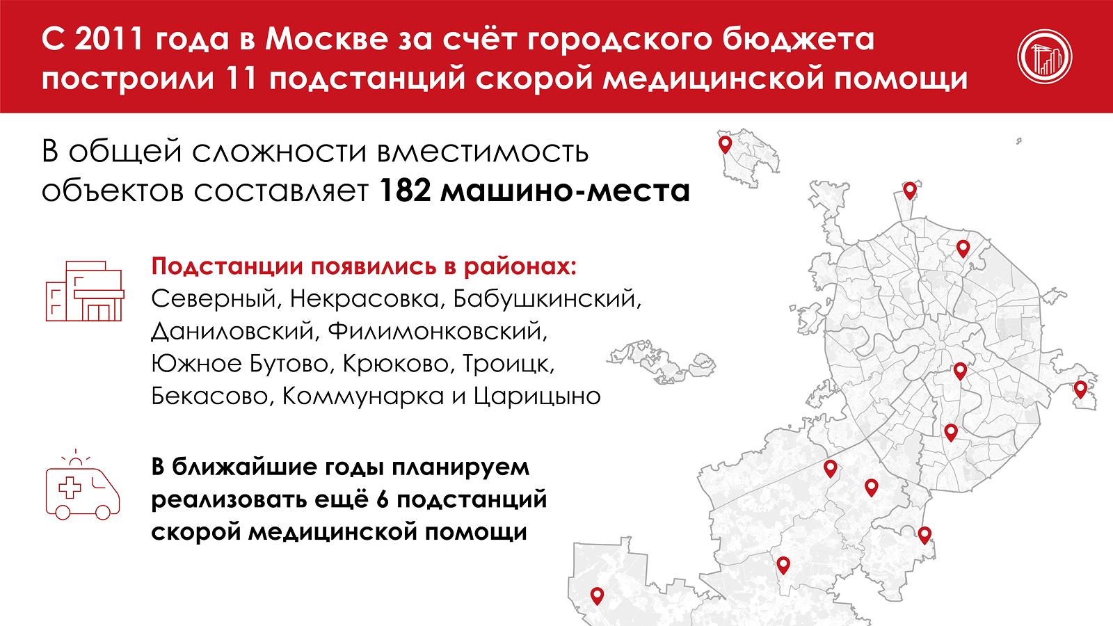 «Город постоянно развивается, строятся новые микрорайоны, и растет потребность в оперативной медицинской помощи. Так, новые подстанции появились в районах Северный, Некрасовка, Бабушкинский, Даниловский, Филимонковский, Южное Бутово, Крюково, Троицк, Бекасово, Коммунарка и Царицыно», – написал Сергей Собянин в своем телеграм-канале.