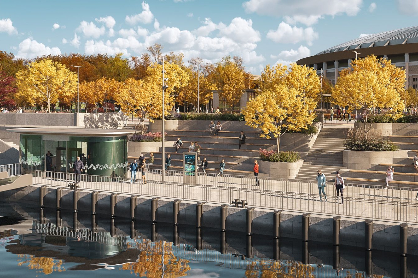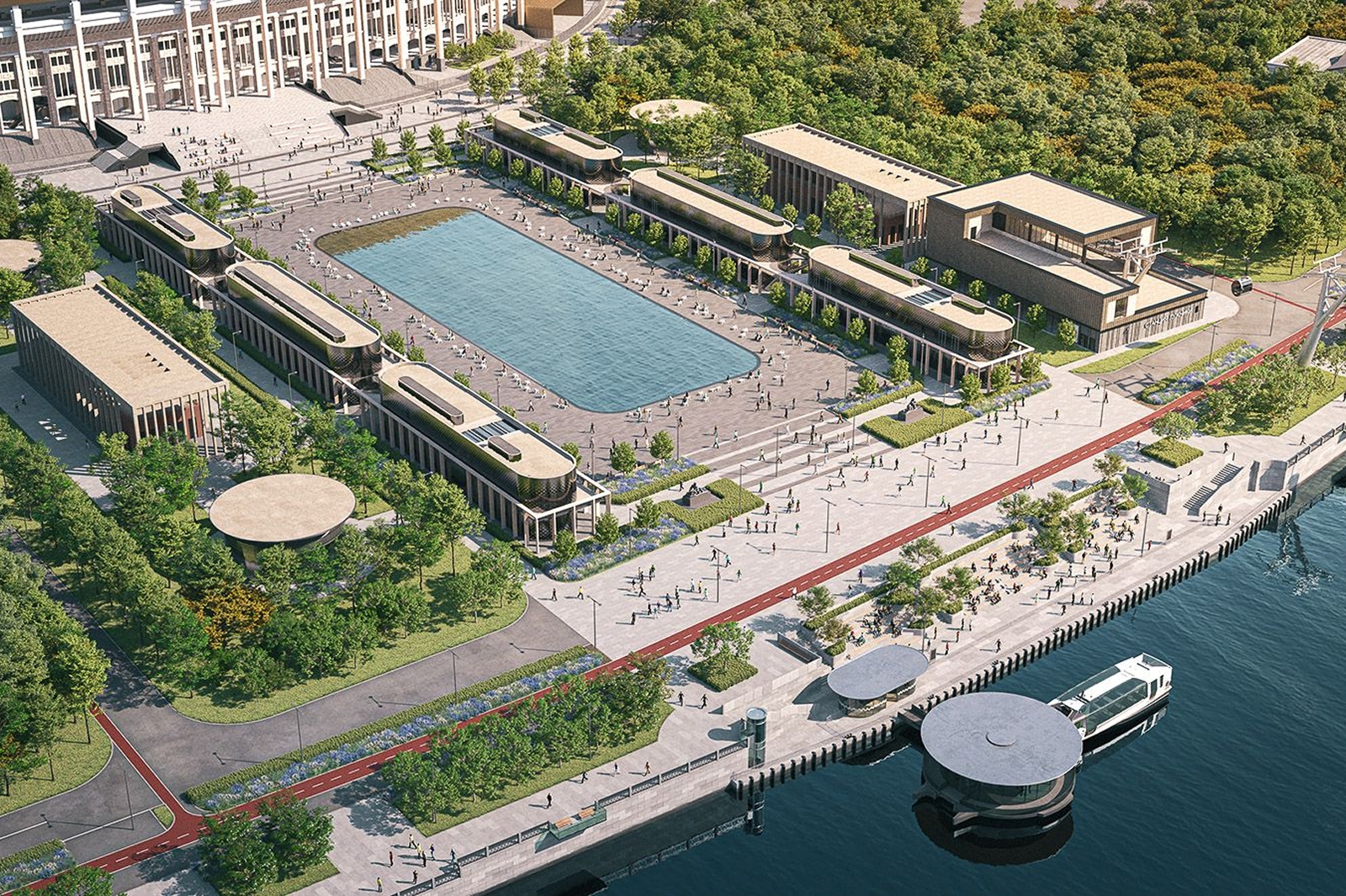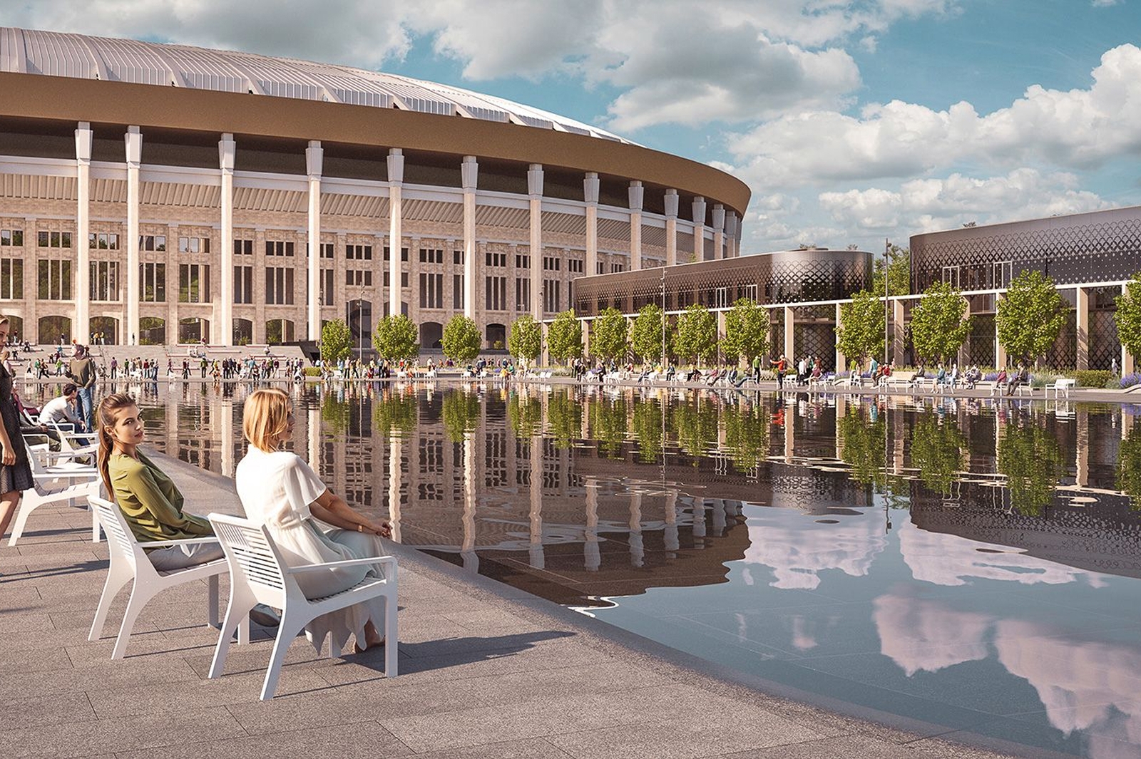 Мэр пояснил, что в оформлении новых строений применят общие композиционные приемы, материалы и формы, это позволит им органично вписаться в единый архитектурный ансамбль «Лужников». Для комфорта отдыхающих потоки машин и пешеходов будут разведены.