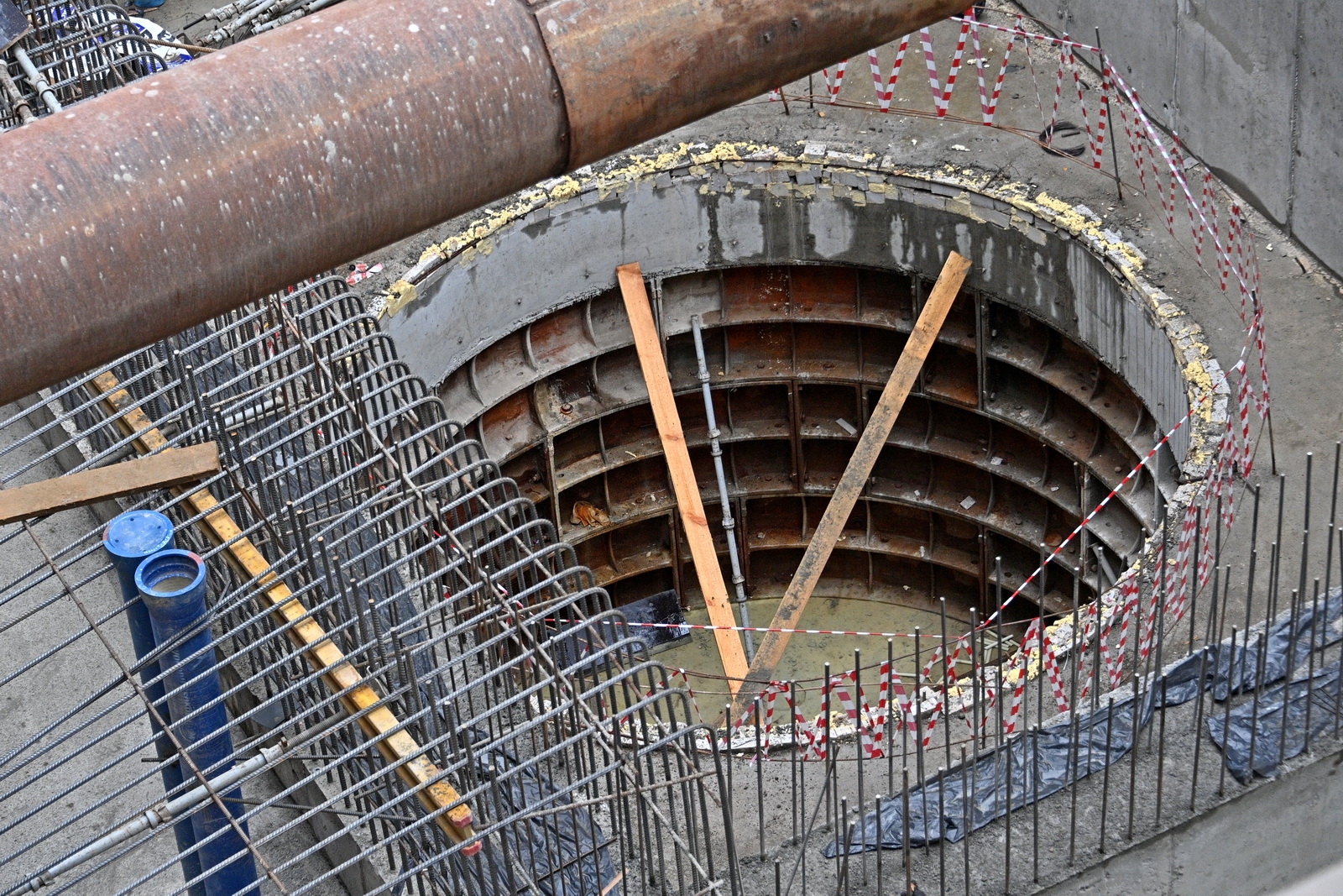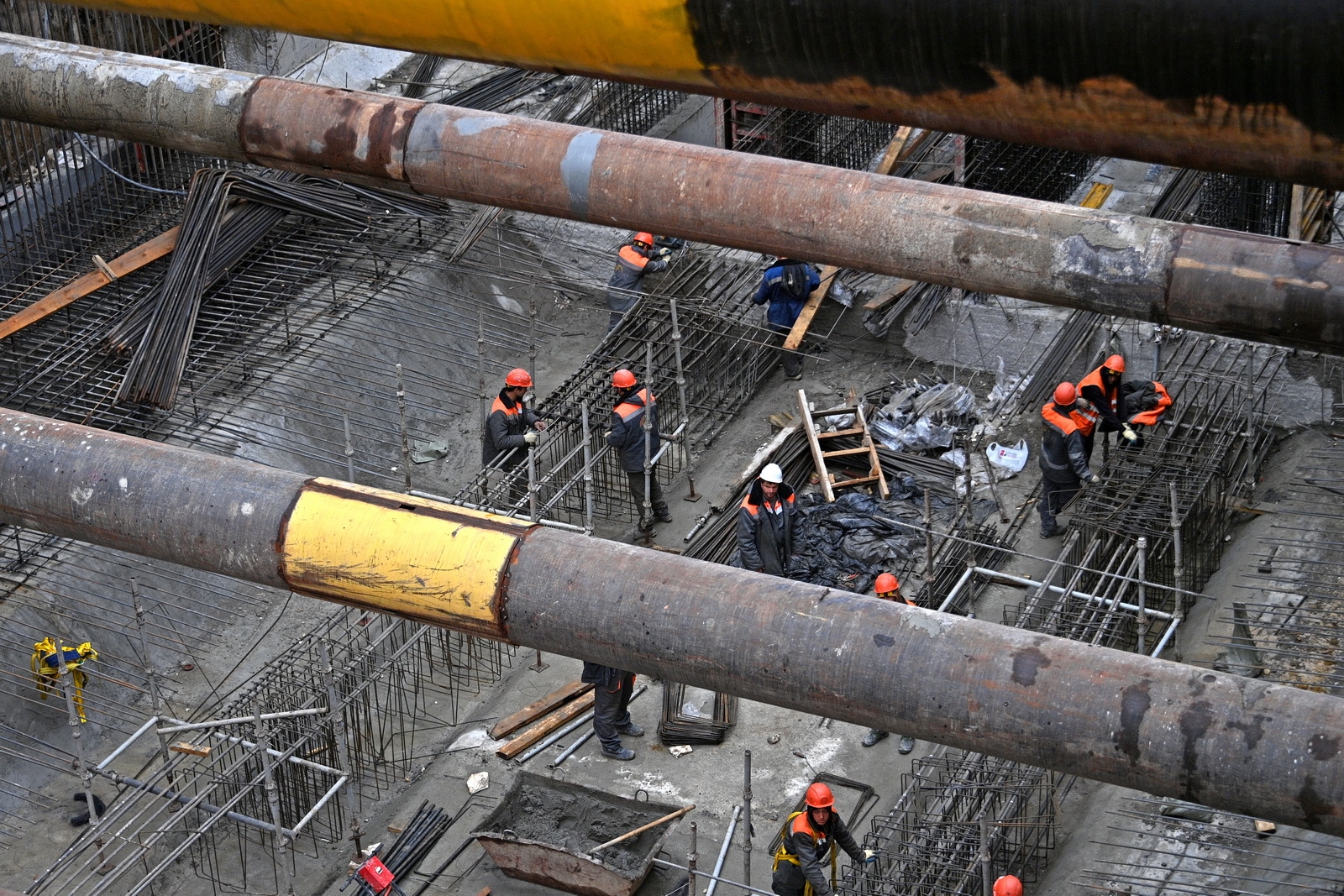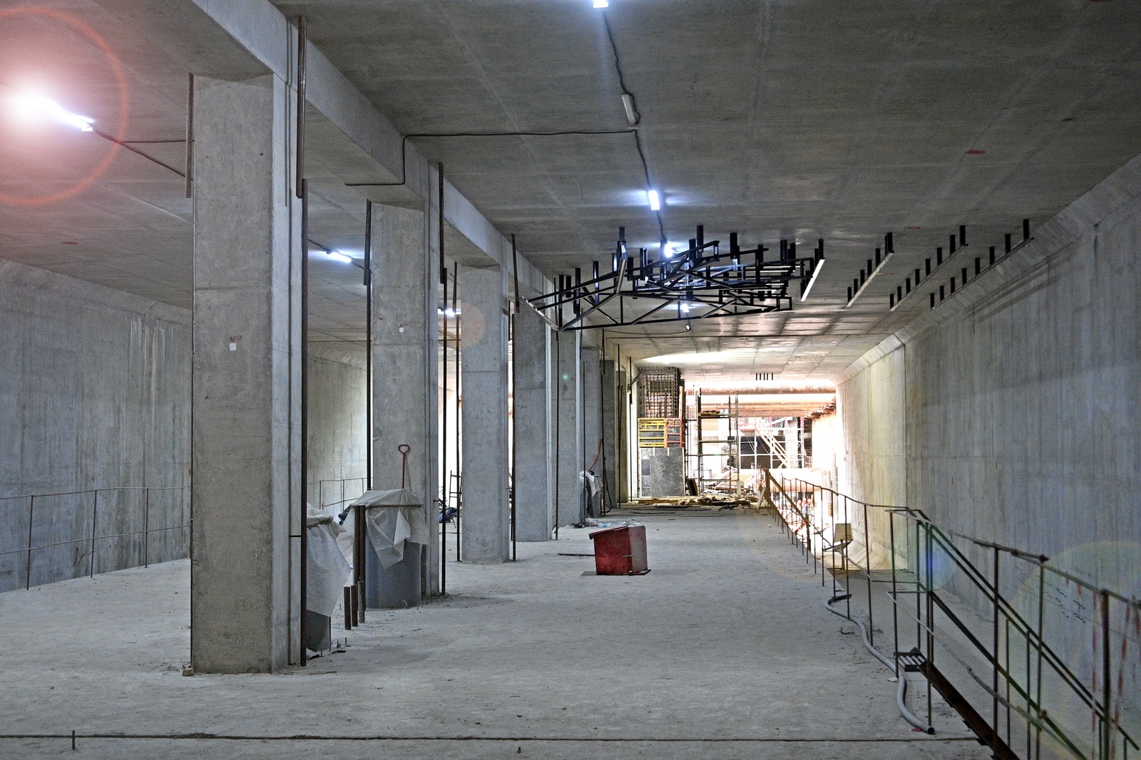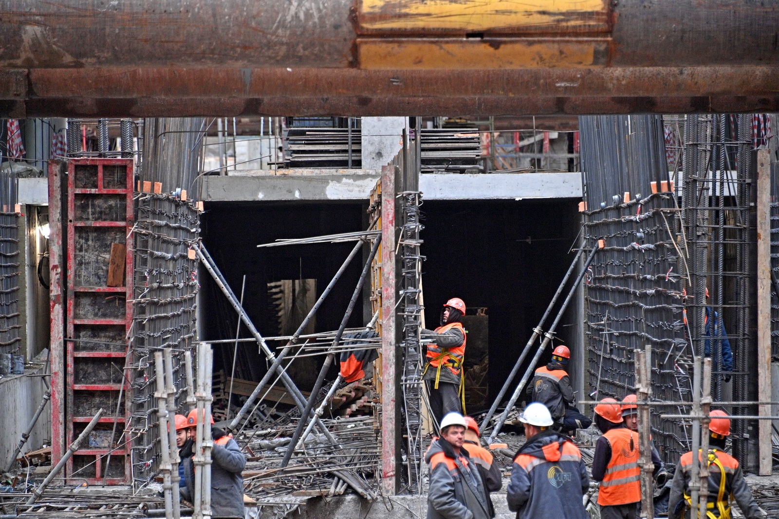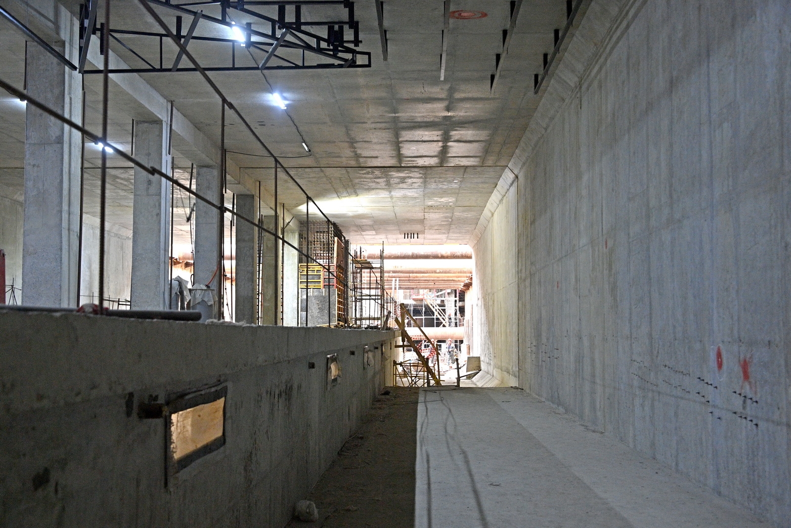 Сейчас здесь ведется устройство основных конструкций и переустройство инженерных коммуникаций. Строительная готовность станции – 45%.
