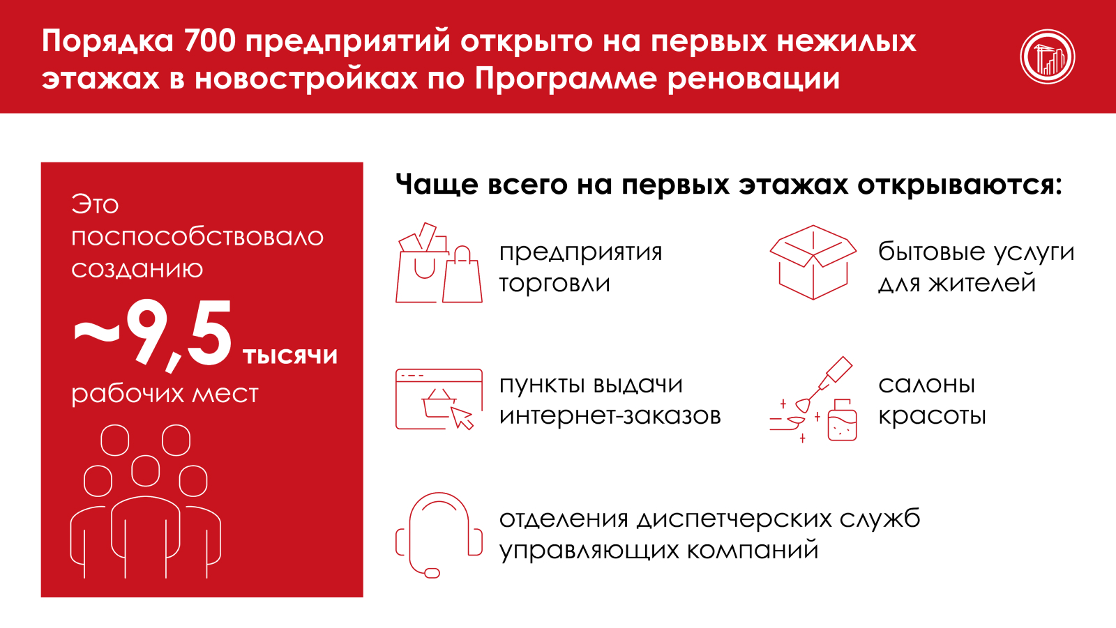 Собянин: около 700 предприятий открыто на первых этажах новостроек по реновации