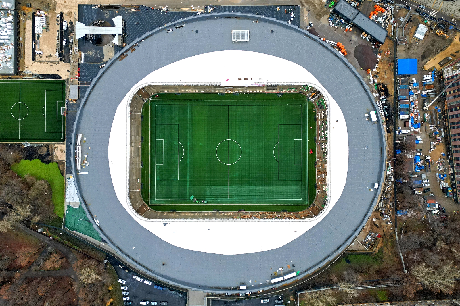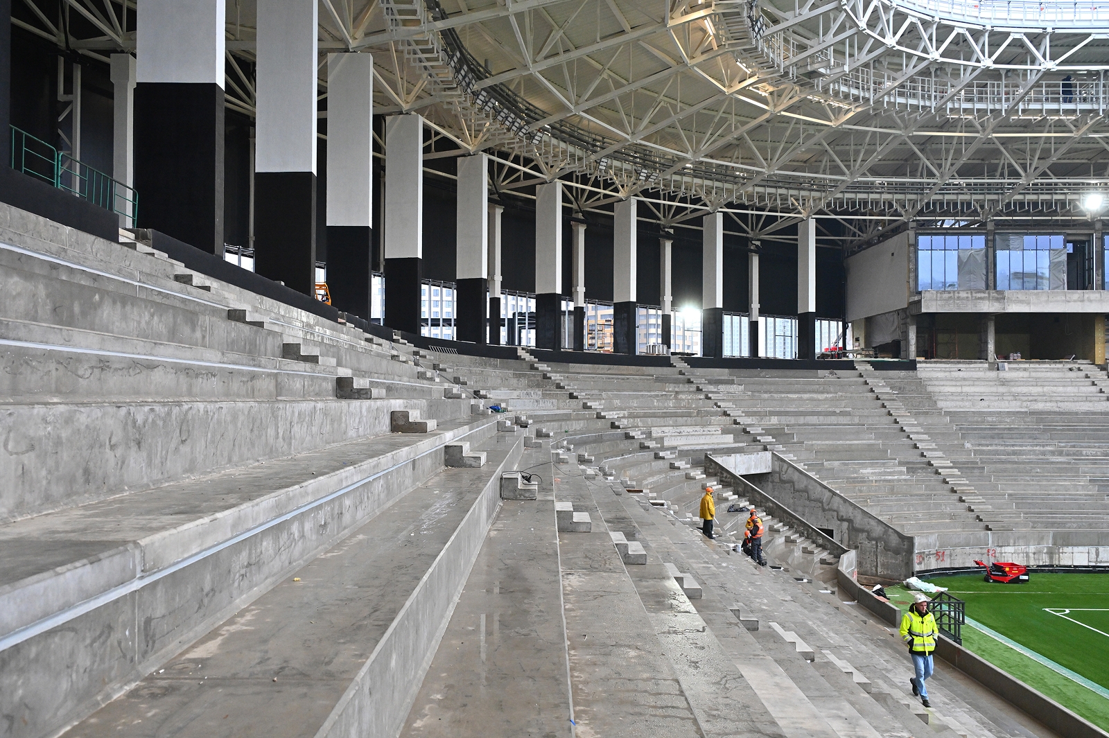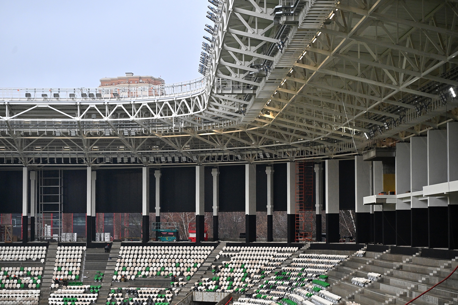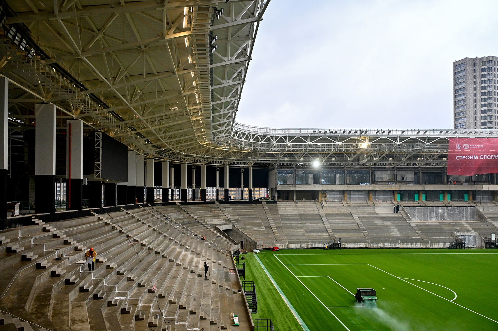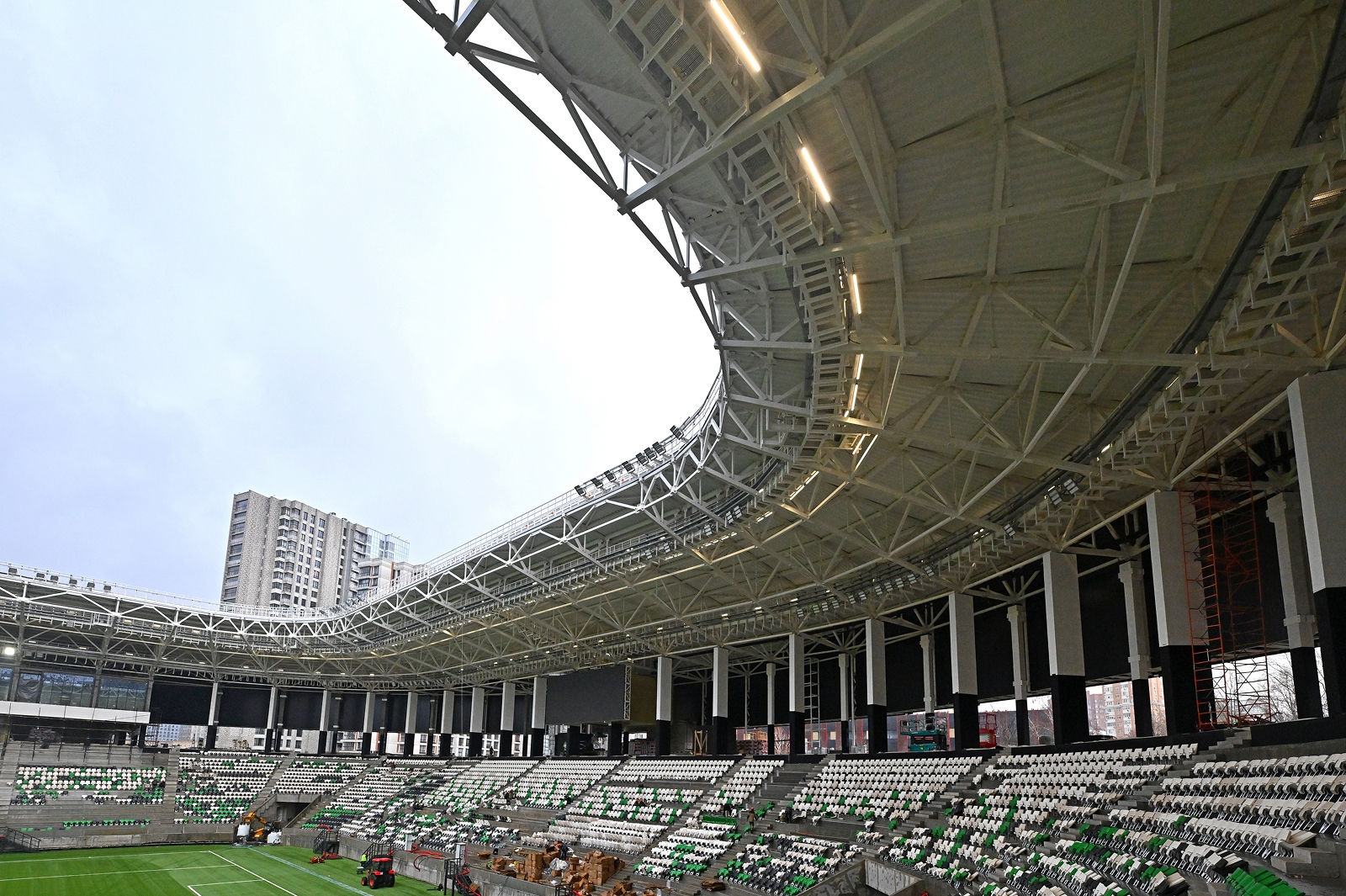 «Строительная готовность объекта составляет 70%. Выполнены монолитные работы, монтаж металлоконструкций, устройство кровли, основного покрытия центрального игрового и большого тренировочного полей. Почти сделаны фасадные работы, ведутся отделка и благоустройство», – добавил Сергей Собянин в телеграм-канале.