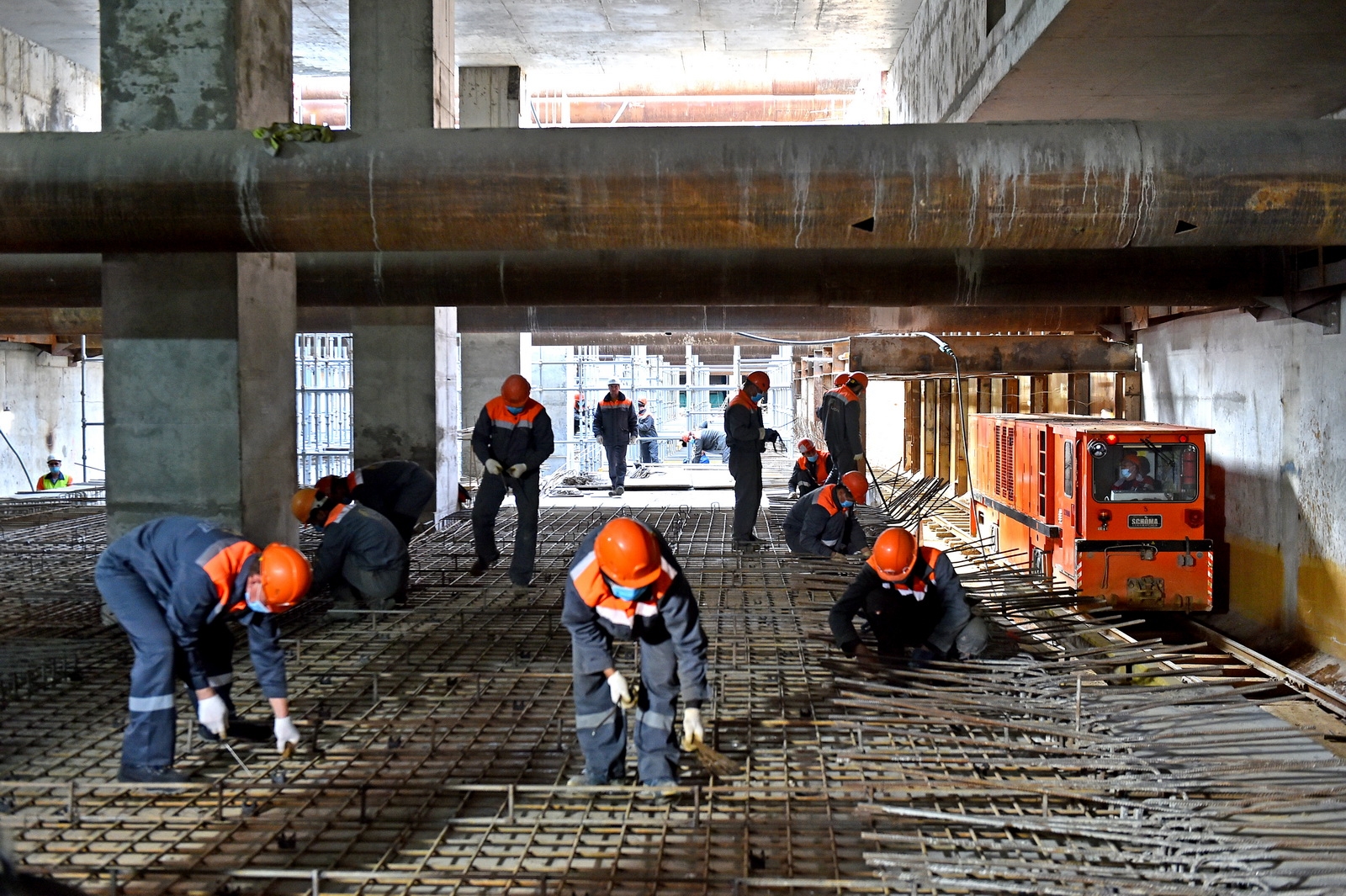 При строительстве станции «Нижегородская» применили технология top-down, когда подземная часть возводится «сверху-вниз» от уровня земной поверхности. Сначала бетонируют перекрытия и сваи-колонны, а потом работы идут вглубь с возможностью параллельного строительства сооружений на поверхности. Это позволяет работать в условиях плотной застройки и экономит время.