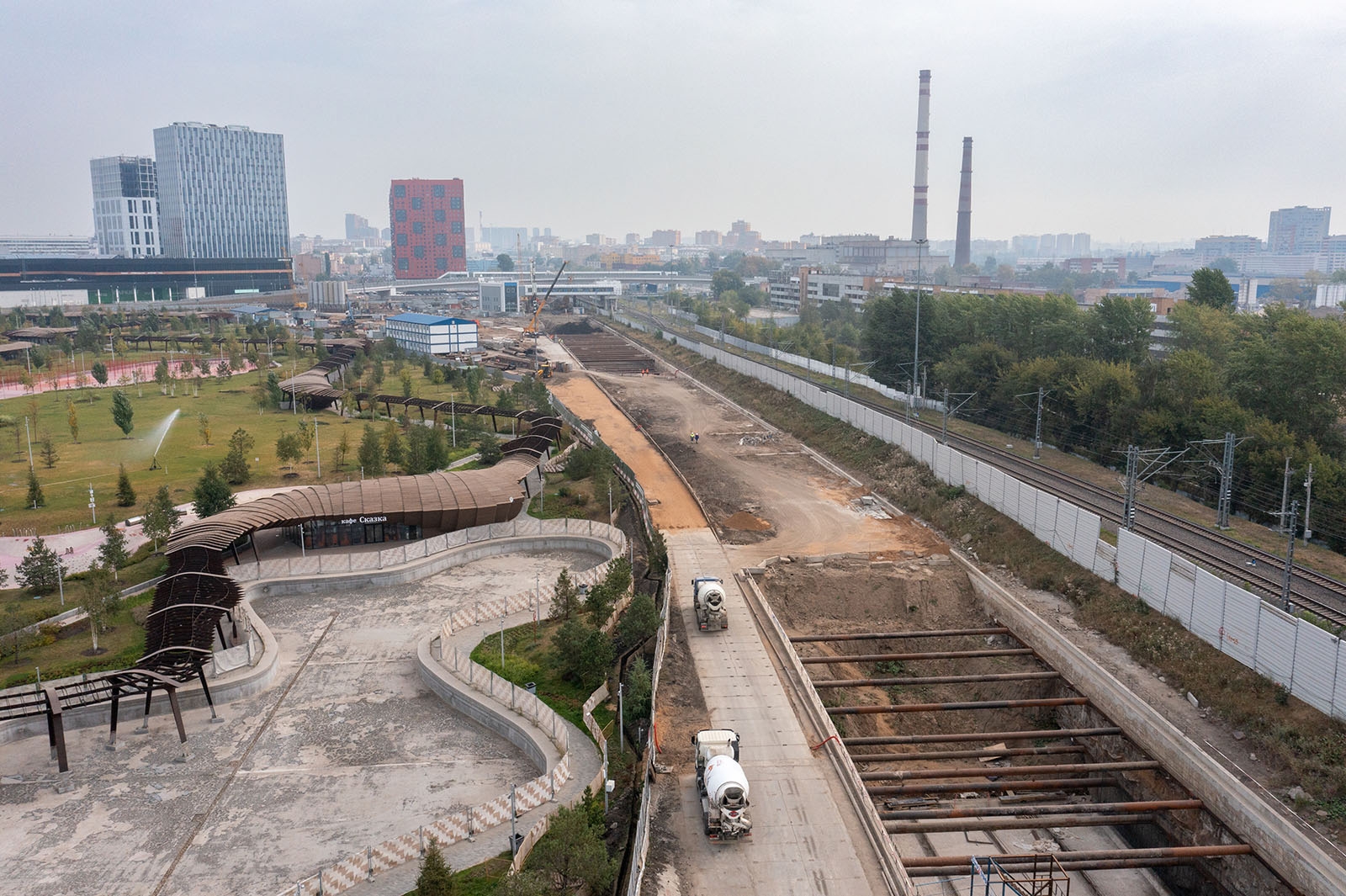 На базе станции ЗИЛ, расположенной в центре строящегося жилого района, создан крупный транспортный узел с надземным пешеходным переходом и пассажирским терминалом над путями, остановочными пунктами наземного общественного транспорта, отстойно-разворотной площадкой для автобусов и плоскостной автостоянкой.