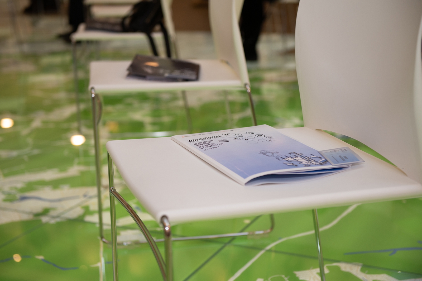 На нее нанесено более 40 тыс. объектов. Инсталляция оборудована шестью устройствами для напольной проекции, стереозвуковым акустическим оборудованием, видеостеной с максимальным разрешением 5760х1080 px. Сверху на карту наложено 20 тонн стекла, поэтому по ней можно ходить.