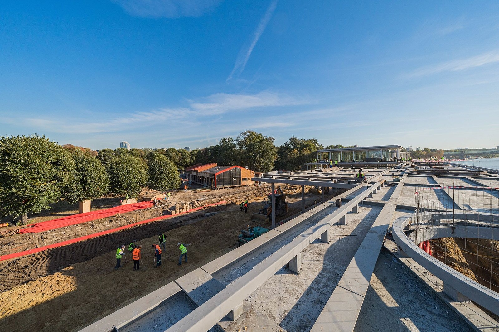 Со стороны реки сооружение будет выглядеть как пришвартовавшийся к берегу круизный лайнер. На крышах павильонов появятся смотровые площадки, а вдоль набережной сохранится широкий пешеходный транзит.