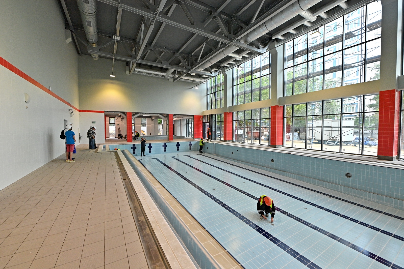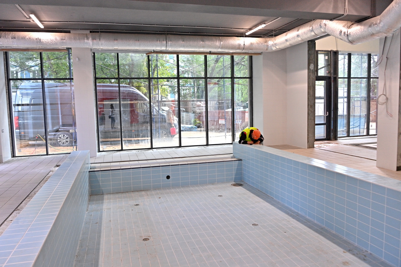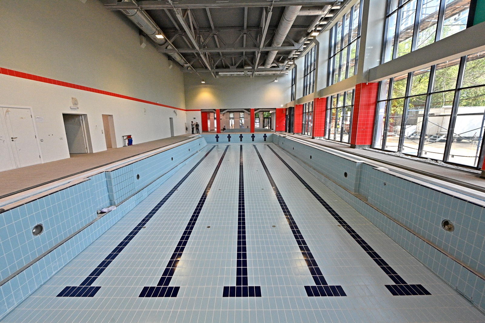 «Сейчас готовность объекта составляет 75%. Фасадные работы также завершены на 75%, строители продолжают монтаж декоративных элементов. Ведется устройство внутренних инженерных систем, их готовность оценивается на 80%, чистовая отделка завершена на 70%. В малом бассейне выполнена облицовка чаши плиткой, в зоне большого бассейна приступили к этим работам. Также началось благоустройство территории», – сказал Рафик Загрутдинов.
