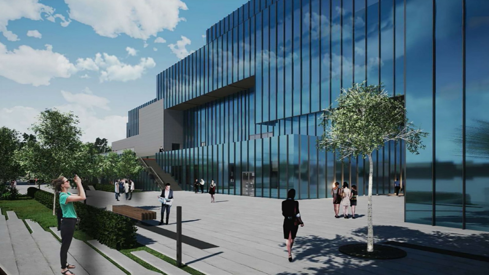 Внешне здание выдержано в современном стиле спортивных сооружений. Каждый блок будет соединен с остальными переходами.