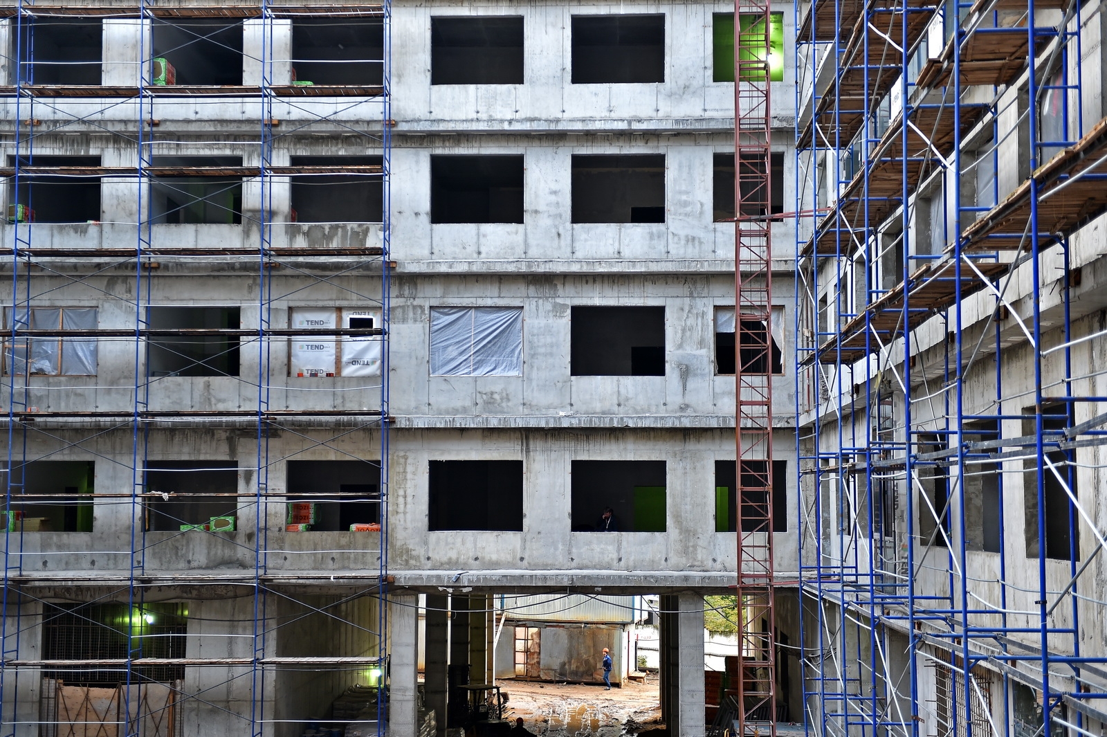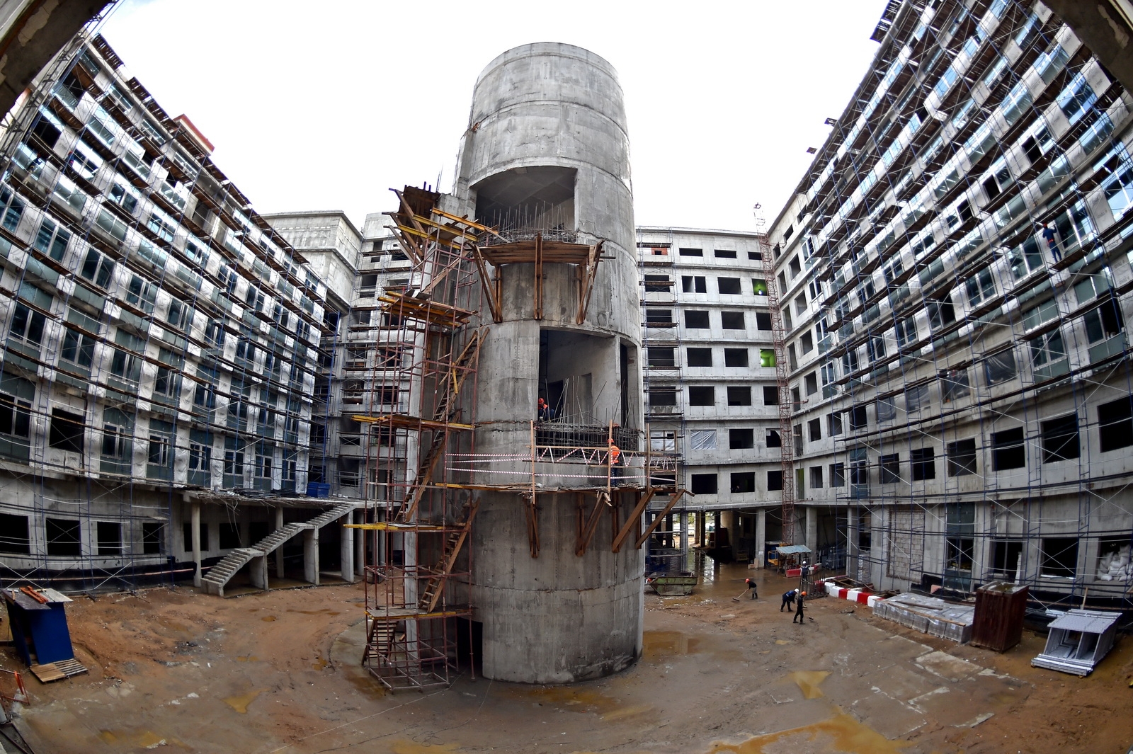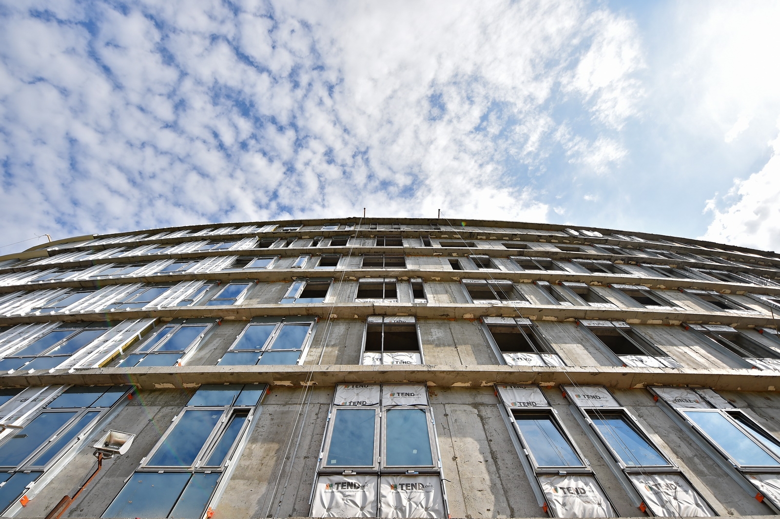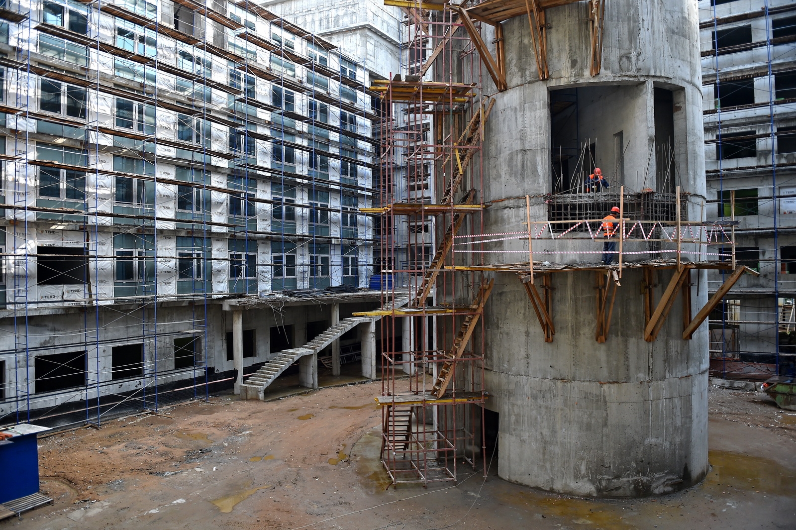 Корпус, рассчитанный на 450 коек, будет иметь различную высоту - от трех до семи этажей.