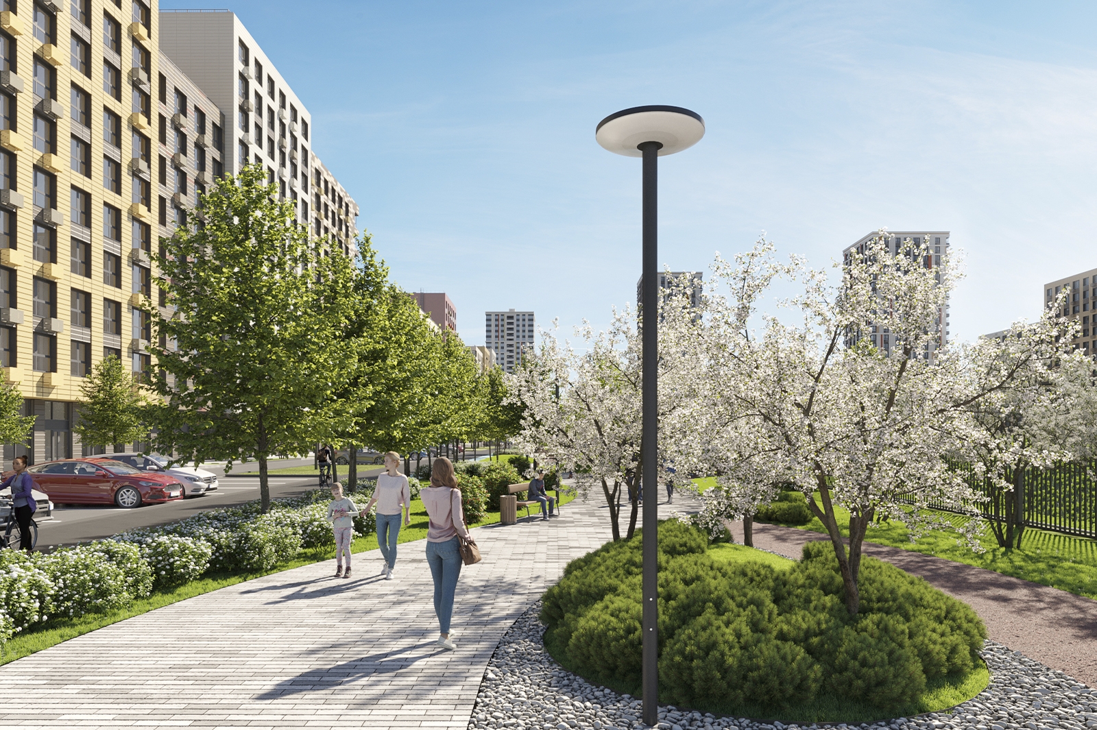 При благоустройстве квартала вокруг стадиона будет высажено более 70 хвойных и лиственных деревьев, устроены газоны и цветники. Напомним, территория LIFE-Варшавская составляет 32 га. Кроме школы с собственным стадионом, в состав образовательной инфраструктуры входят три детских сада. Всего в смарт-квартале будет построено 21 здание на 7 тыс. квартир и подземный паркинг на 2600 машиномест.