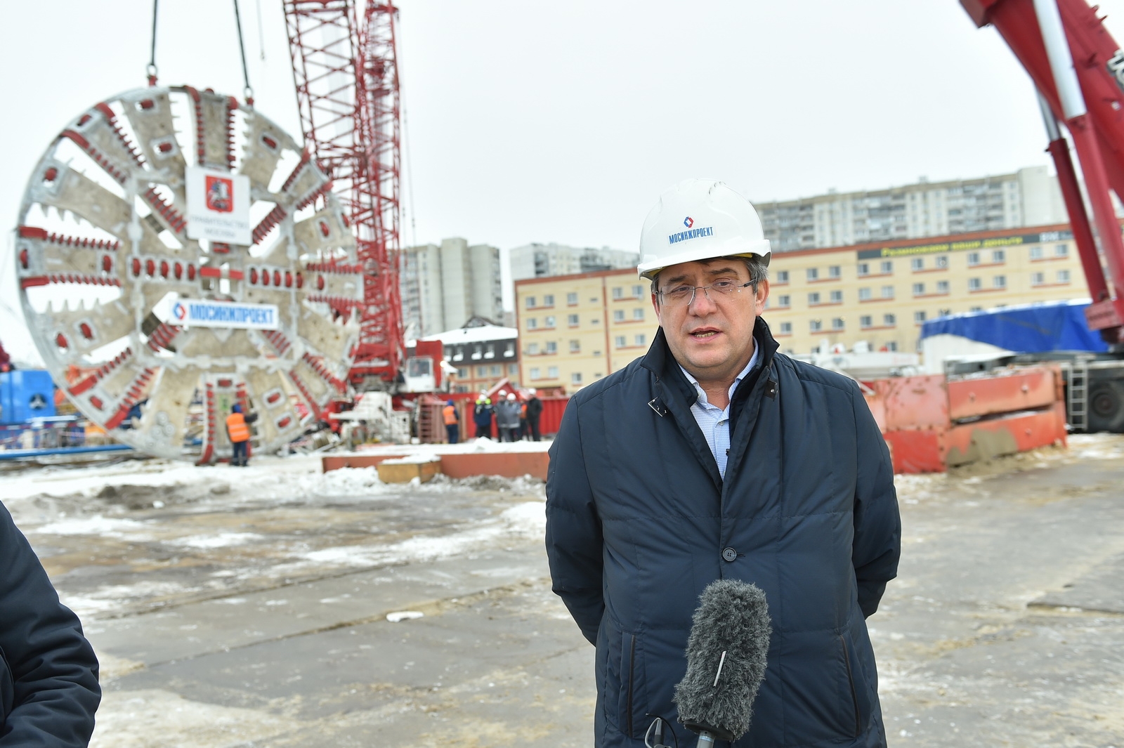 «Мы завершаем монтаж первого в Москве десятиметрового тоннелепроходческого щита. Уже 28 декабря он начнет проходку к станции метро «Юго-Восточная», - сказал М. Газизуллин.