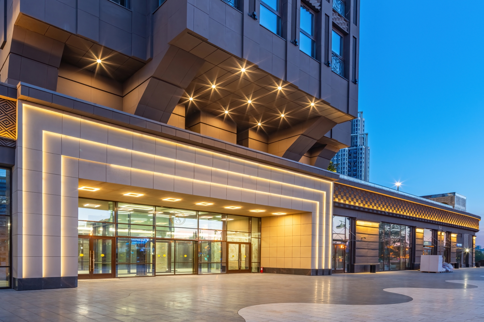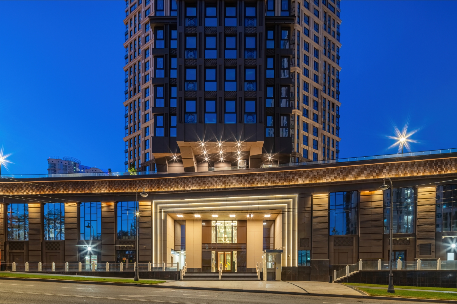 «Фасад торговой галереи оформлен в природной терракотовой палитре с рельефным геометричным орнаментом. В качестве материалов использовали натуральный гранит и композитные облицовочные материалы. Центральный вход в галерею благодаря контрастной светлой отделке выступает зрительным акцентом здания. В вечернее время своды портала и декоративные элементы дополнительно подчеркиваются с помощью архитектурной подсветки», – сказал Сергей Кузнецов.