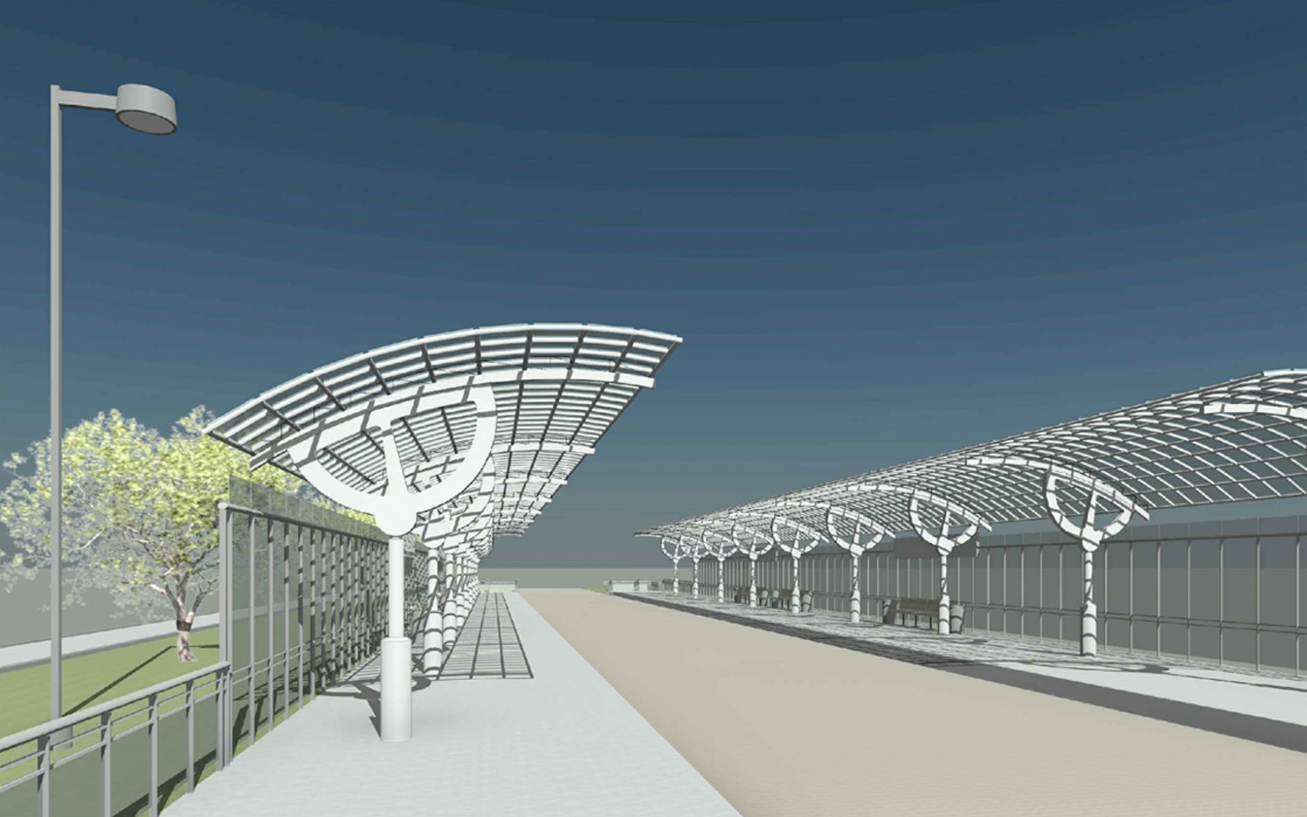Трамвайные пути расположатся отдельно от проезжей части и пешеходных зон. Территорию у каждой остановки благоустроят с учетом подъезда спецтранспорта, машин аварийных служб, пожарных и скорой помощи. Установят освещение, лавочки, урны и разобьют газоны из многолетников.