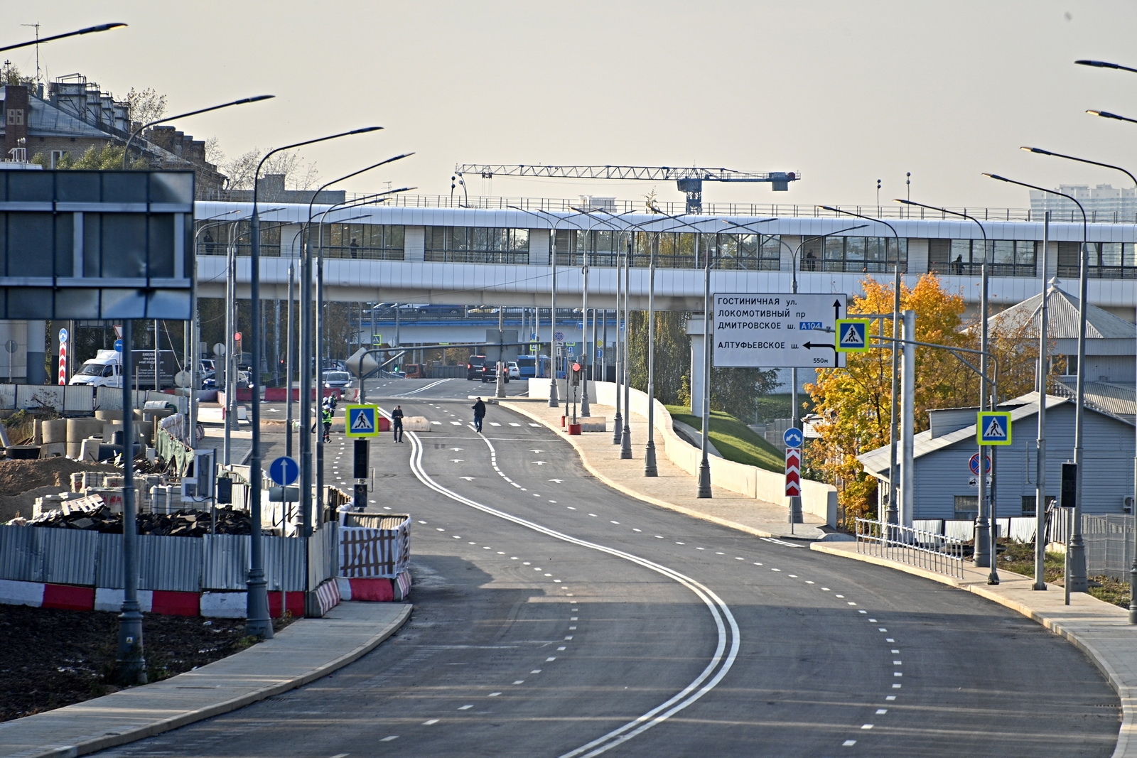 По его словам, по проекту построено 8,1 км дорог, включая два путепровода через пути Московского центрального кольца (МЦК) и два моста через реку Лихоборку с прилегающими дорогами и боковыми проездами. Также благоустроена территория: разбито 3,7 га газона, высажено 74 дерева и почти 1,2 тыс. кустарников.