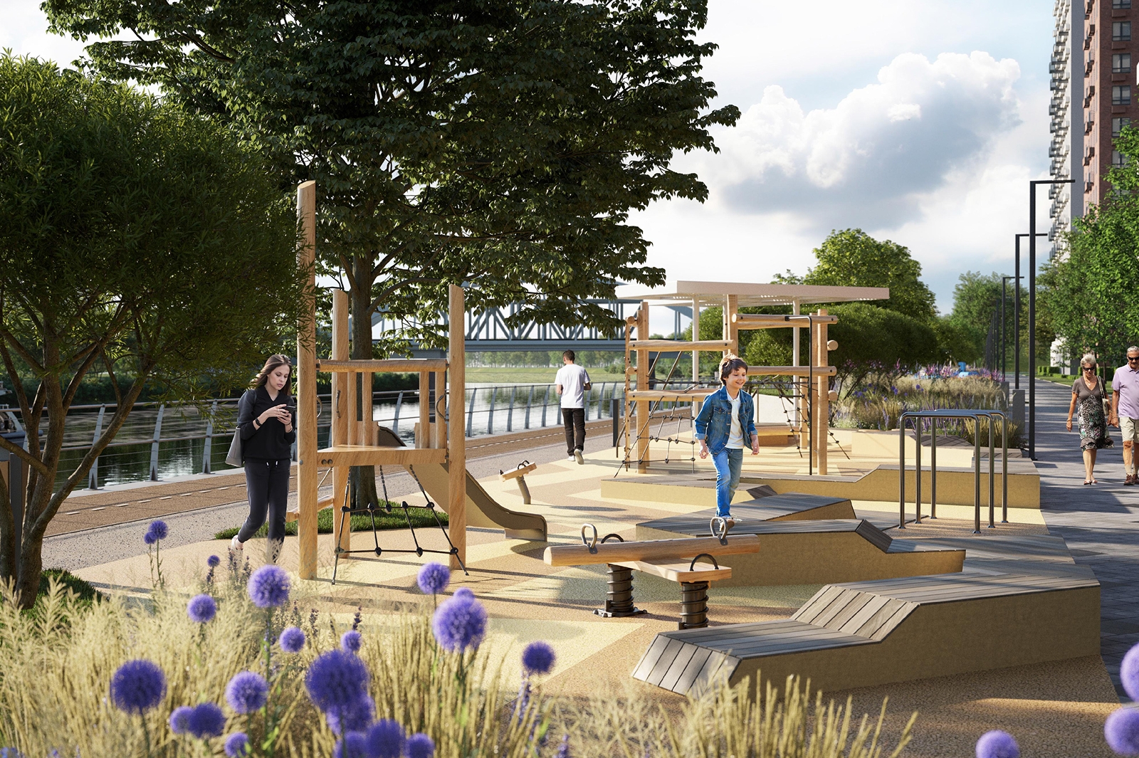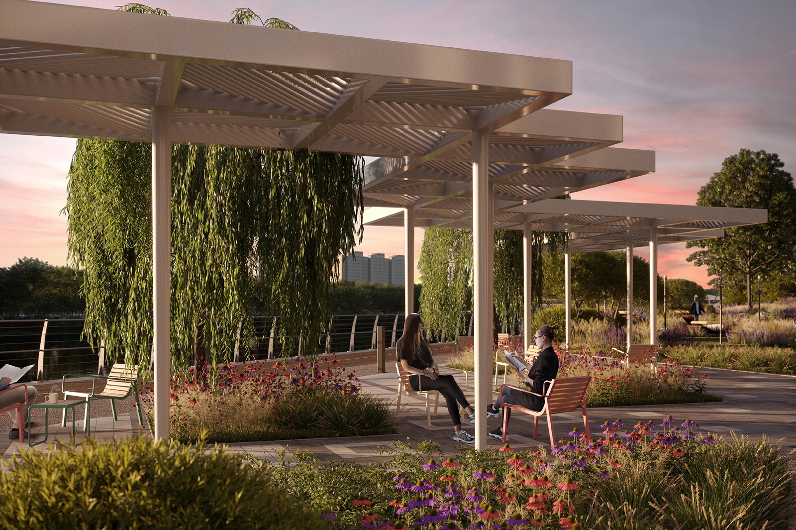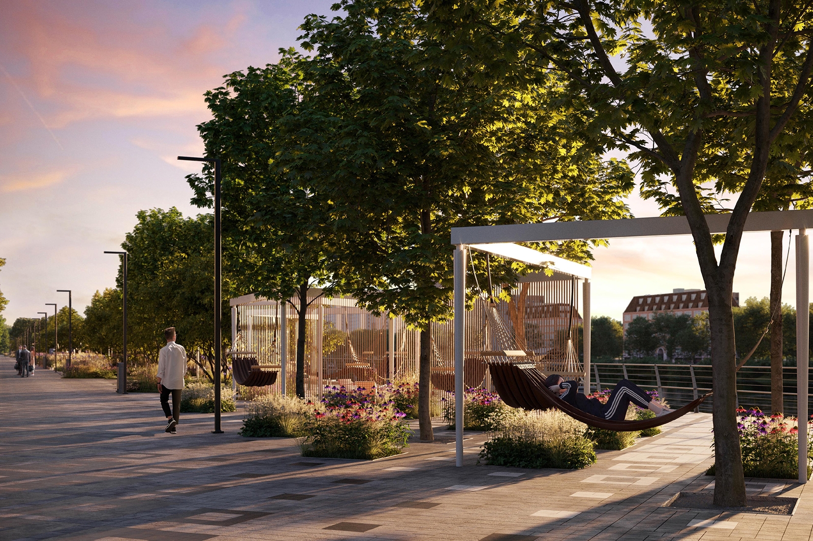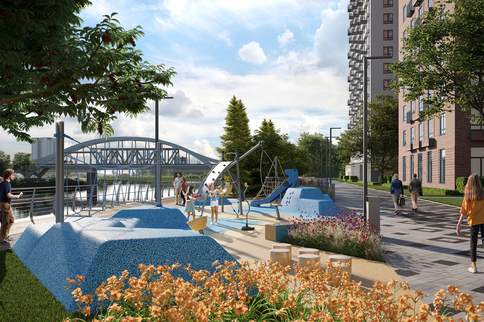 «Там построят пешеходную зону с покрытием из гранитной плитки, велодорожку с асфальтобетонным покрытием, беговую дорожку с покрытием из резиновой крошки. Кроме того, разобьют газоны и высадят цветники, кустарники и деревья, оборудуют разноуровневые лавочки и места для тихого отдыха с навесами», – пояснил Василий Десятков.