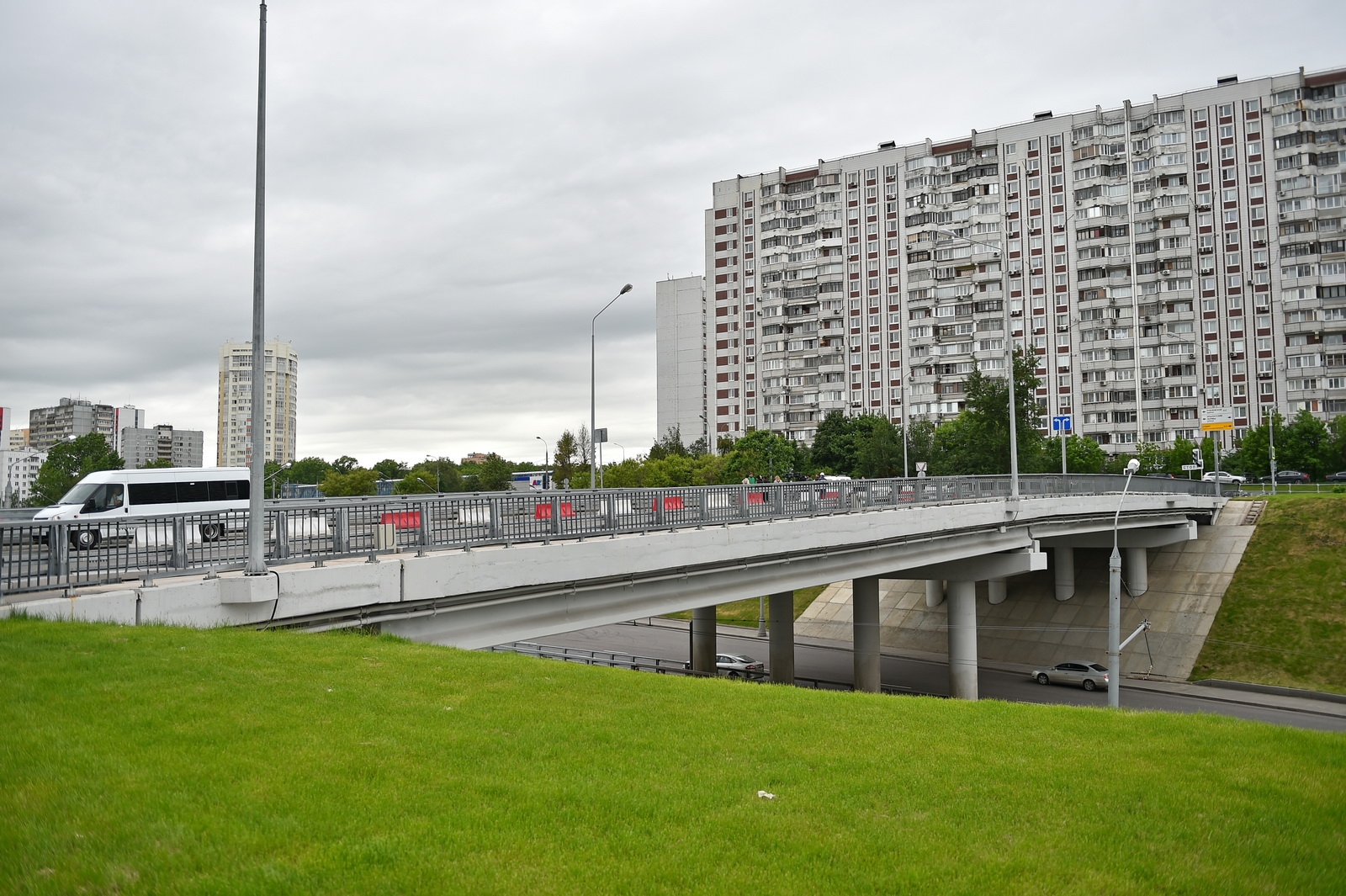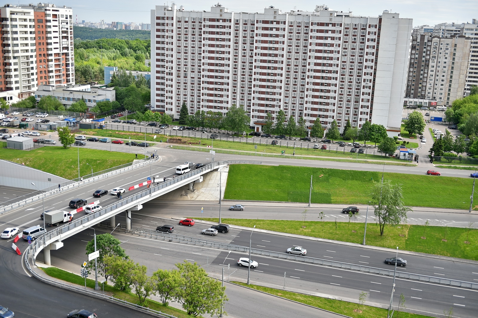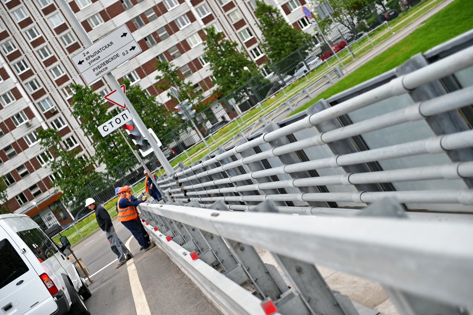 Здесь предусмотрено пять пешеходных переходов, три уже открыты. Строители установили более 700 метров шумозащитных экранов вдоль дороги, в домах заменили около 18 тысяч окон на пластиковые.