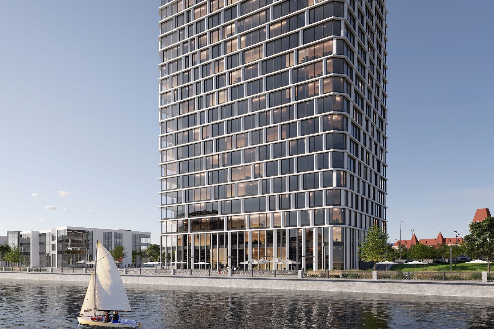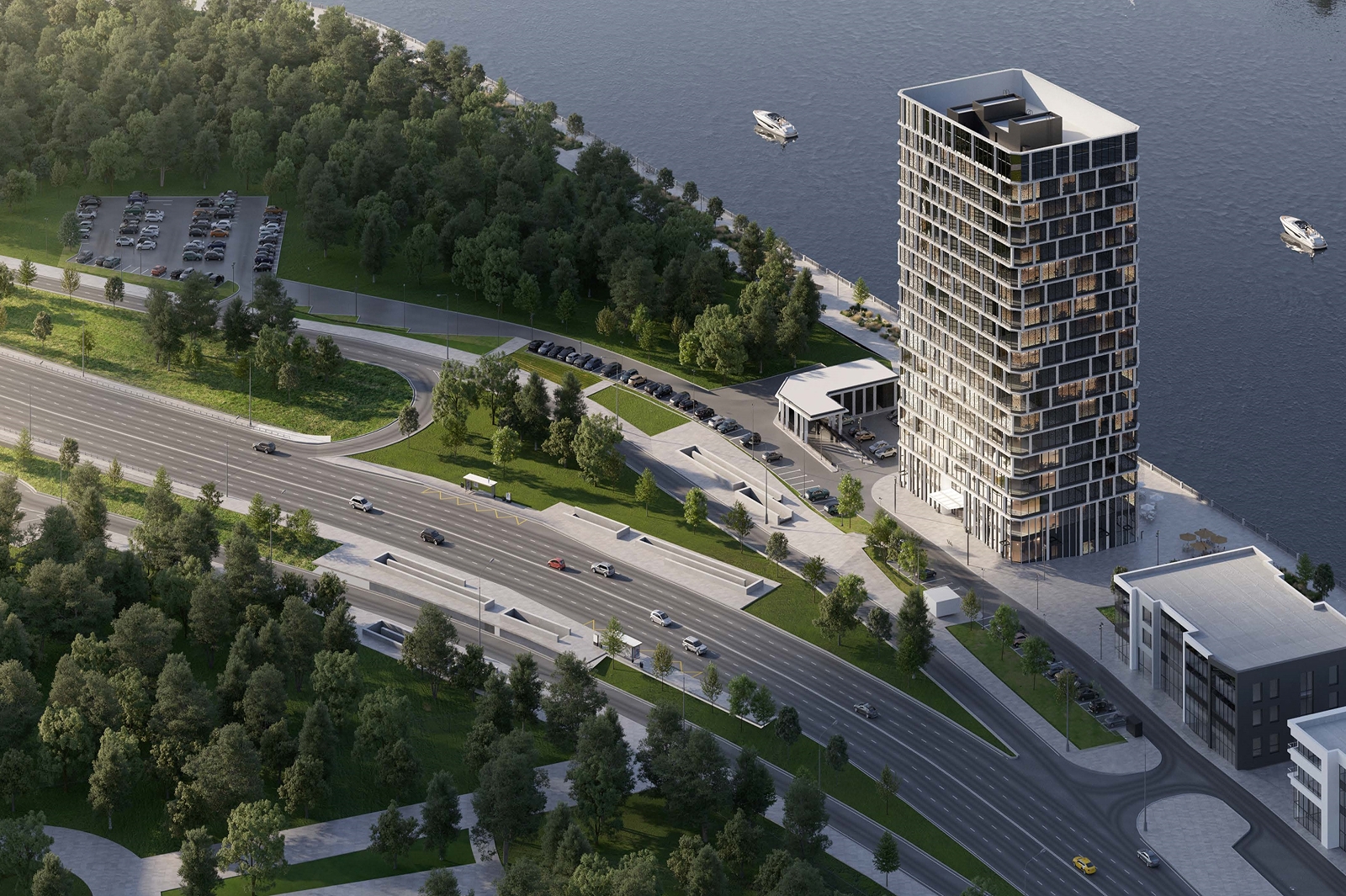 По его словам, комплекс станет частью градостроительного ансамбля набережной – при кажущейся простоте визуальный облик здания отличается динамичностью.