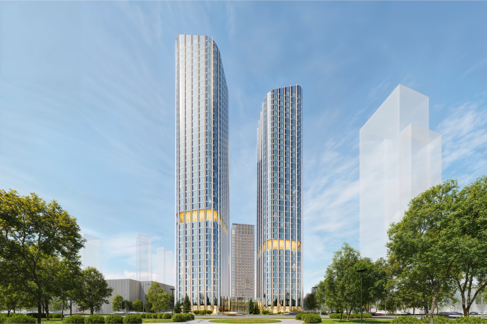 Башни объединит стеклянное лобби, в котором разместятся комьюнити-зоны, СПА-комплекс, места для отдыха, кафе и другие функциональные зоны, необходимые для комфортной жизни в комплексе.