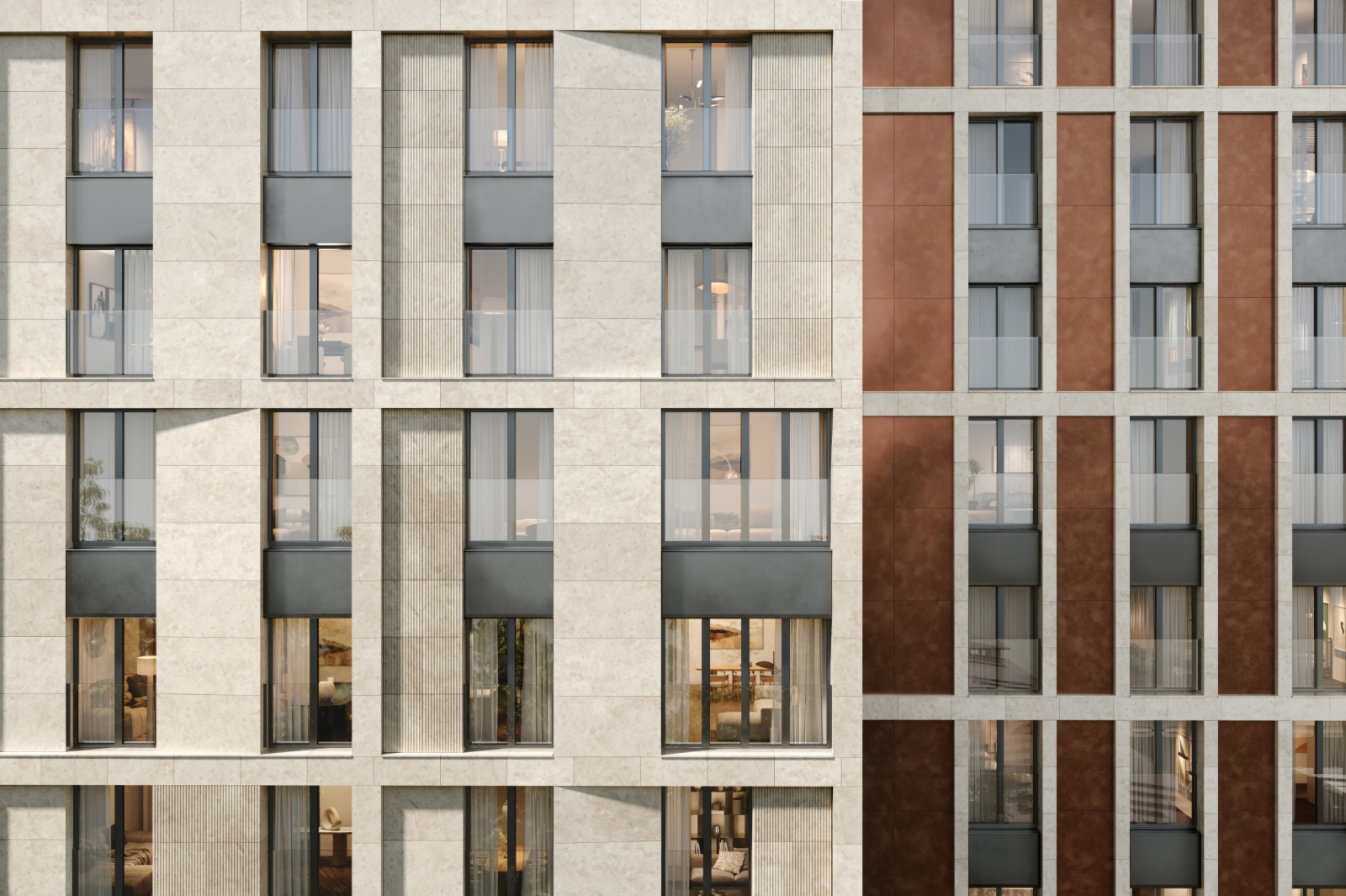 Авторов концепции вдохновили традиции раннего итальянского ренессанса, о котором напоминают фасады Изофабрики. Дома получат варьирующуюся от светло-бежевого цвета до глубокого графита палитру. Здания облицуют натуральным камнем и клинкерным ригельным кирпичом.