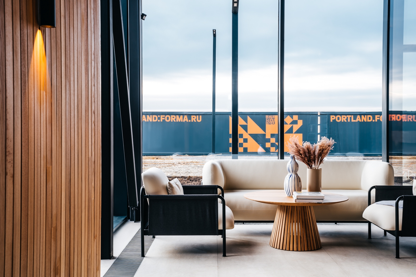 «Новое дизайн-пространство площадью 382,6 кв. метров концептуально объединено с будущими корпусами единым архитектурным кодом, передающим энергетику морской гавани», – сказал Андрей Бочкарёв.