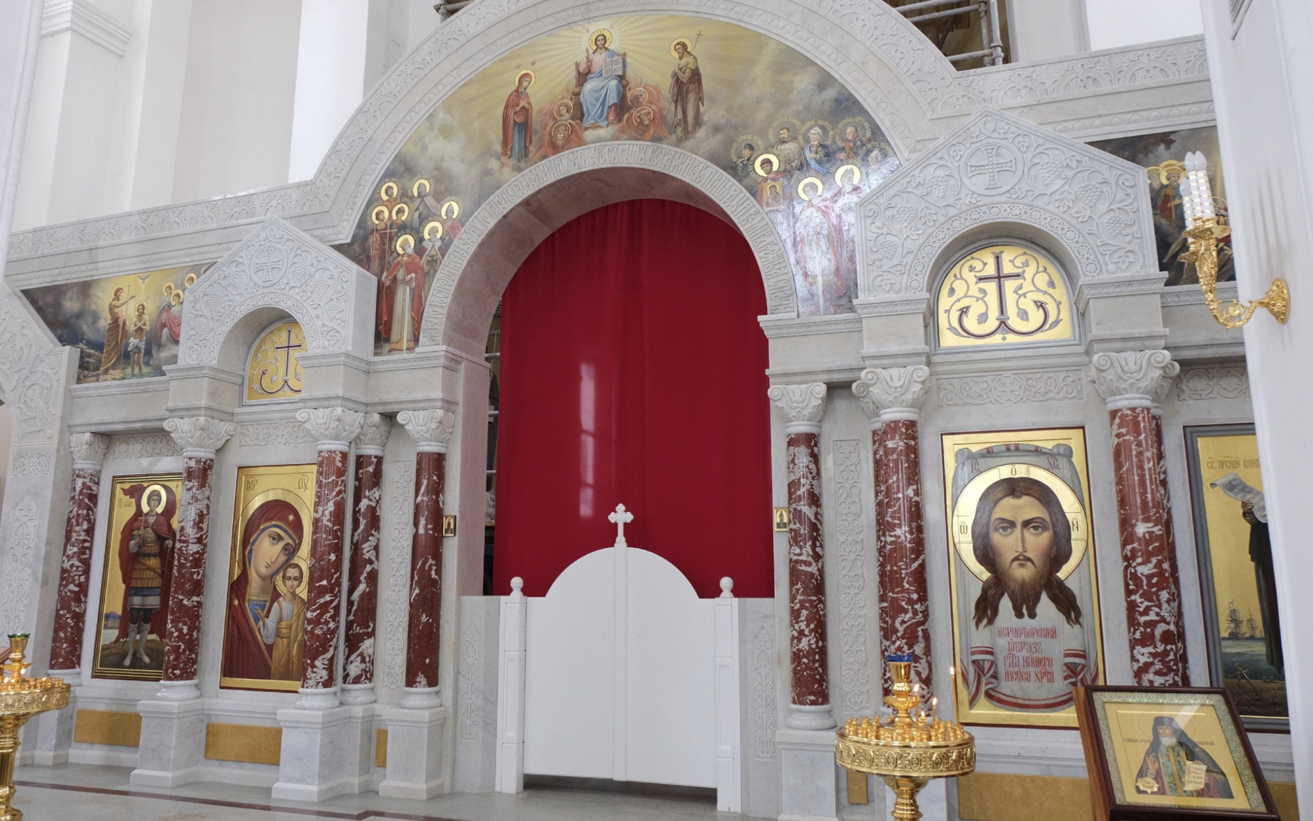 Он отметил, что резной иконостас, выполненный из природного камня, уже смонтирован и украшен иконами.