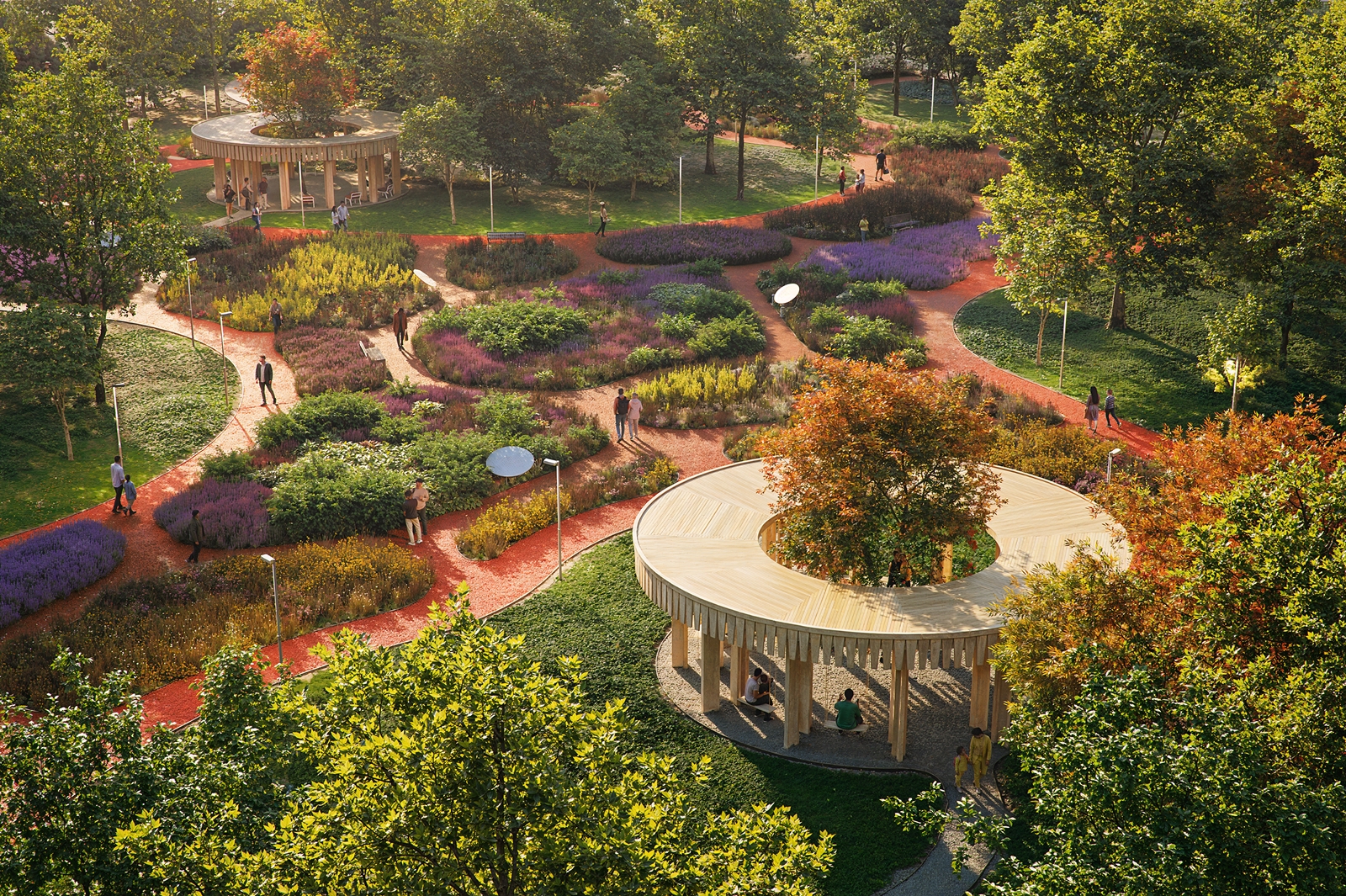 - зоны городских качелей, воркаута, тихих игр и отдыха;