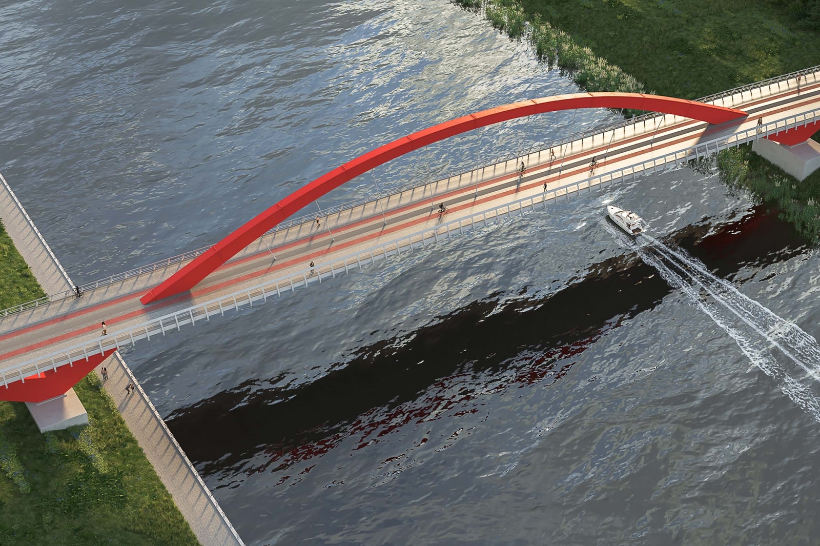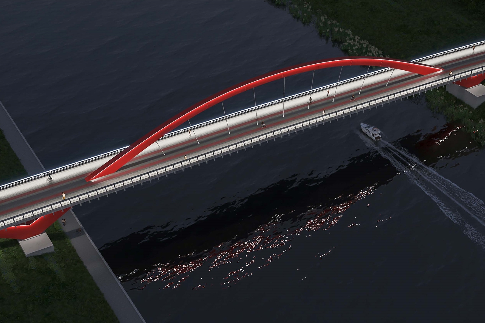 «Оно будет эстетически перекликаться с возведенным рядом Гагаринским мостом, арки которого исполнены в алом цвете, и со строящимся сейчас мостом в створе улицы Островной, пролет которого также украсят декоративными деталями красного цвета», – пояснил Василий Десятков.