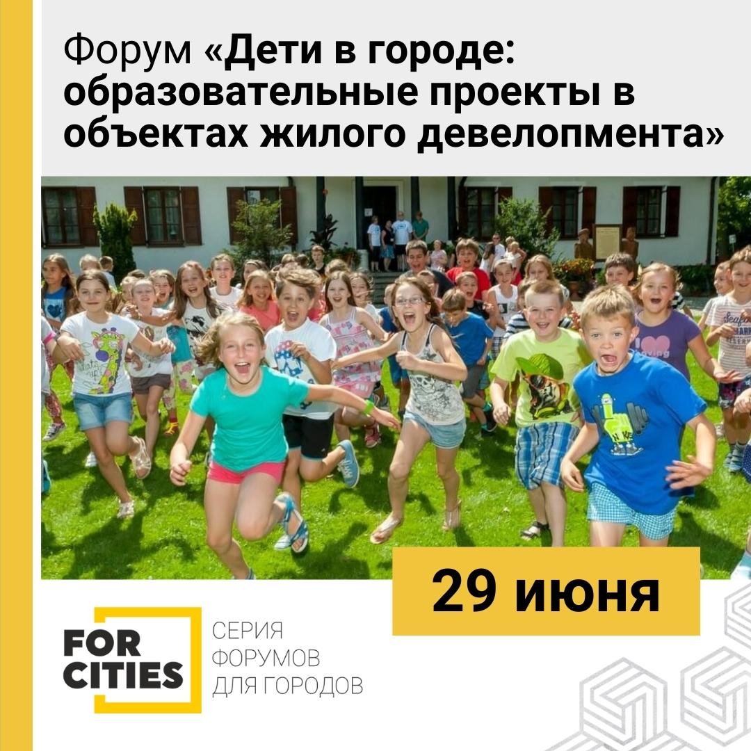 Первый Всероссийский форум «Дети в городе: образовательные проекты в объектах жилого девелопмента» пройдет 29 июня в столице, сообщили в пресс-службе Школы девелопера.