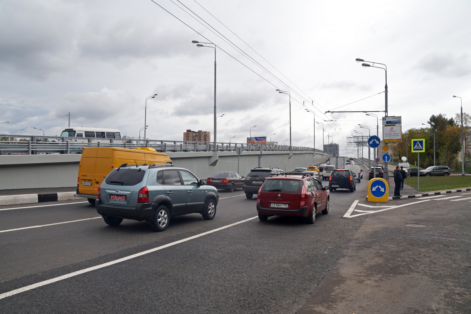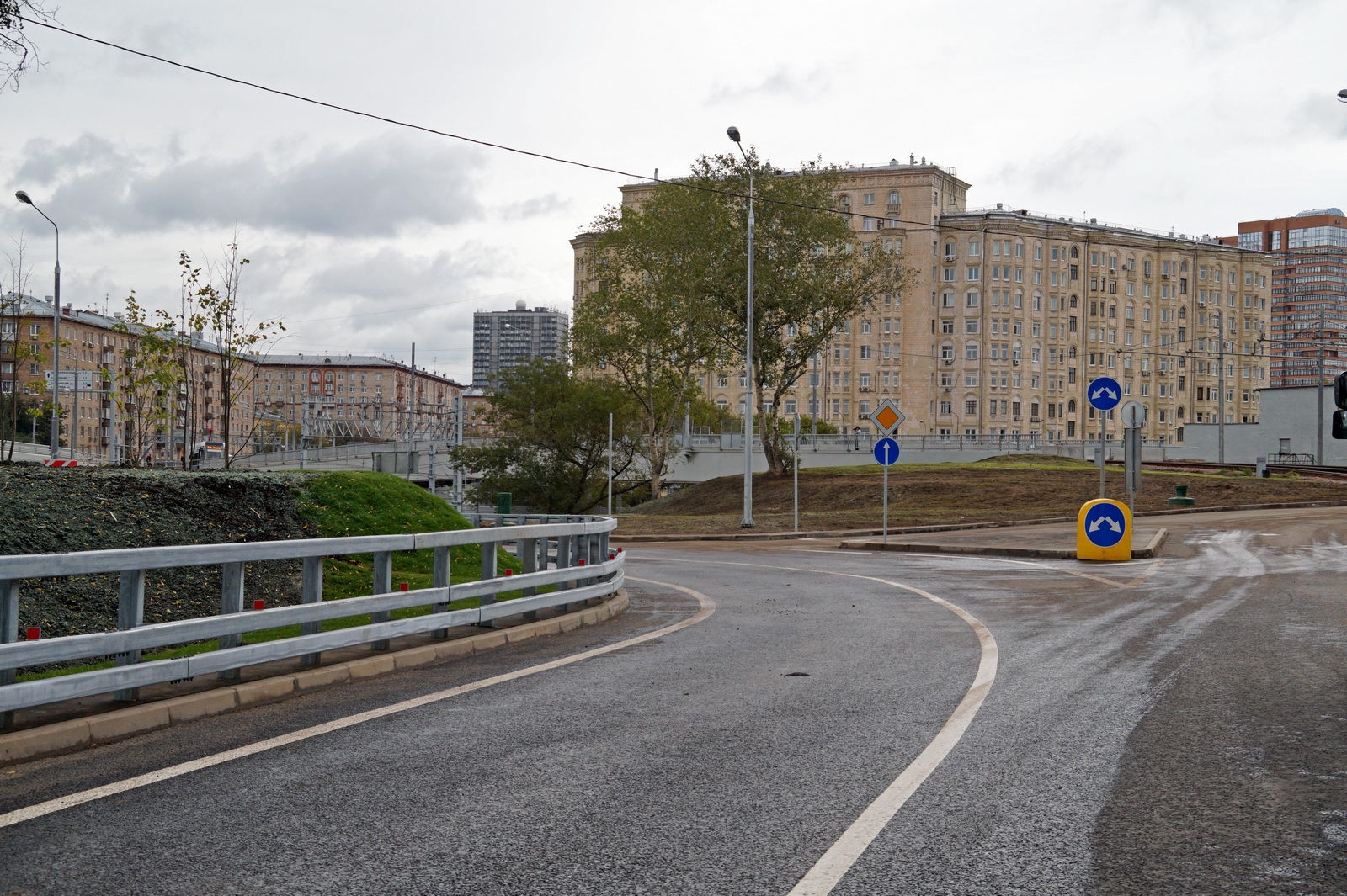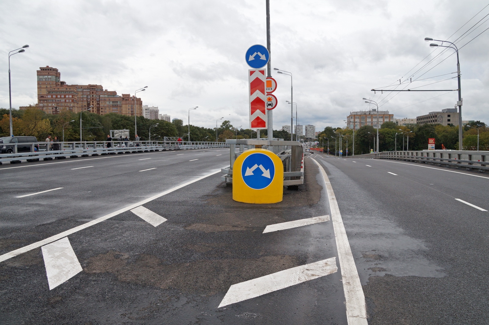 Этот путепровод - важная часть реконструкции Волоколамского шоссе. Количество полос увеличилось здесь с 6 до 10, появились выделенные полосы для общественного транспорта.