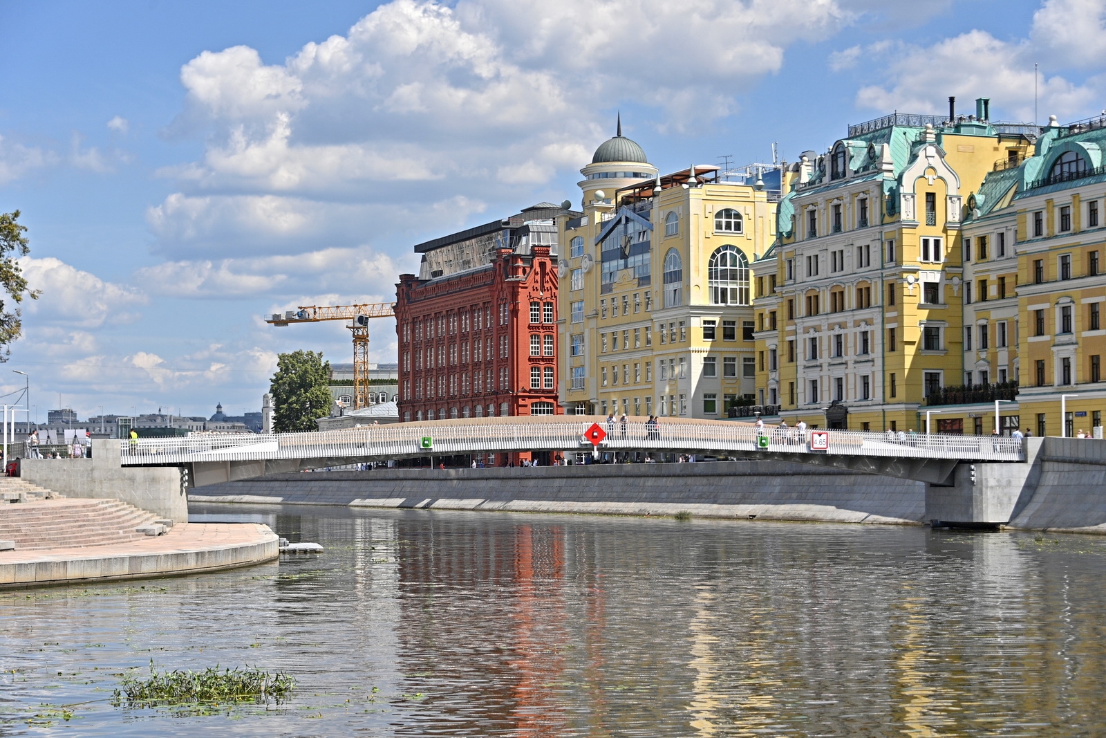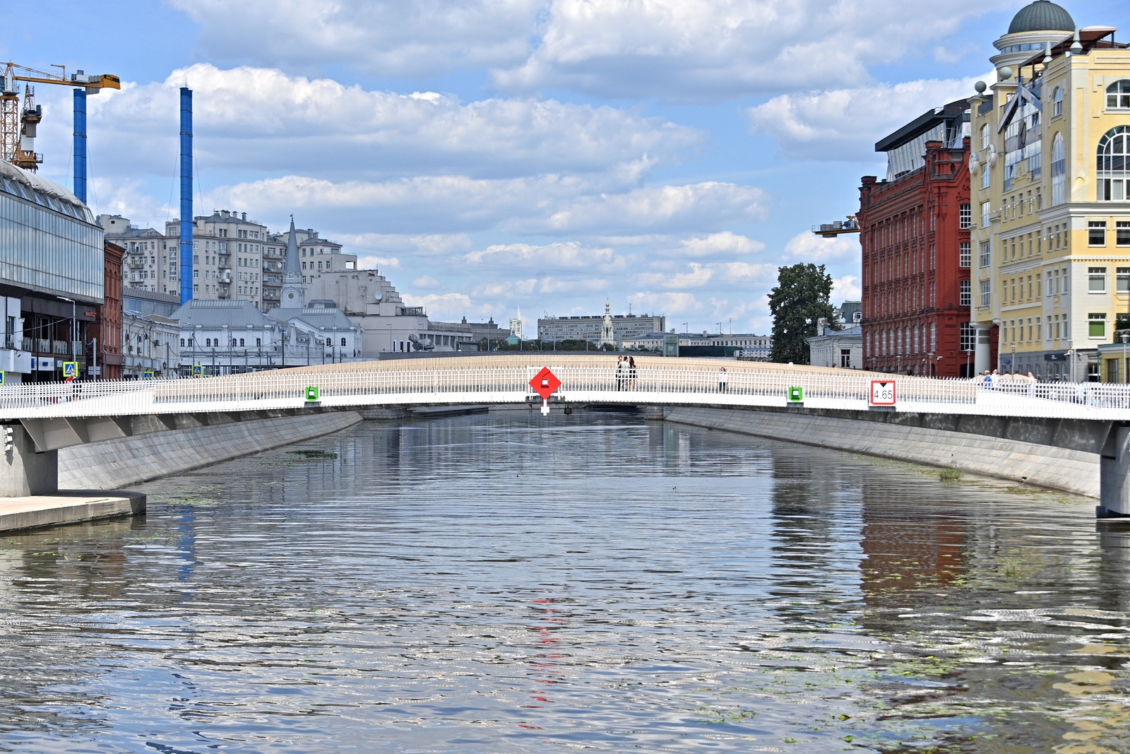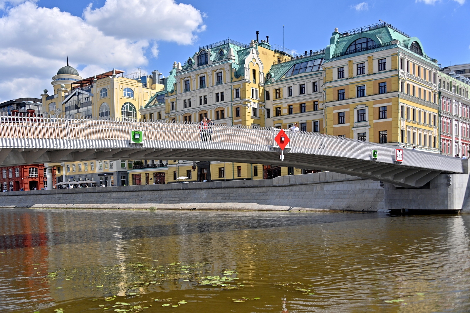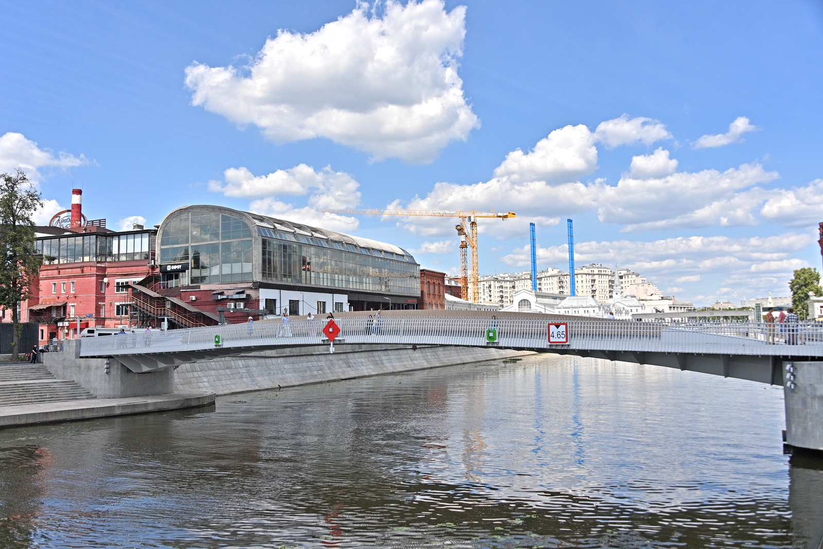 - пешеходный мост, соединивший стрелку острова Балчуг (Болотную набережную) с Крымской и Якиманской набережными;