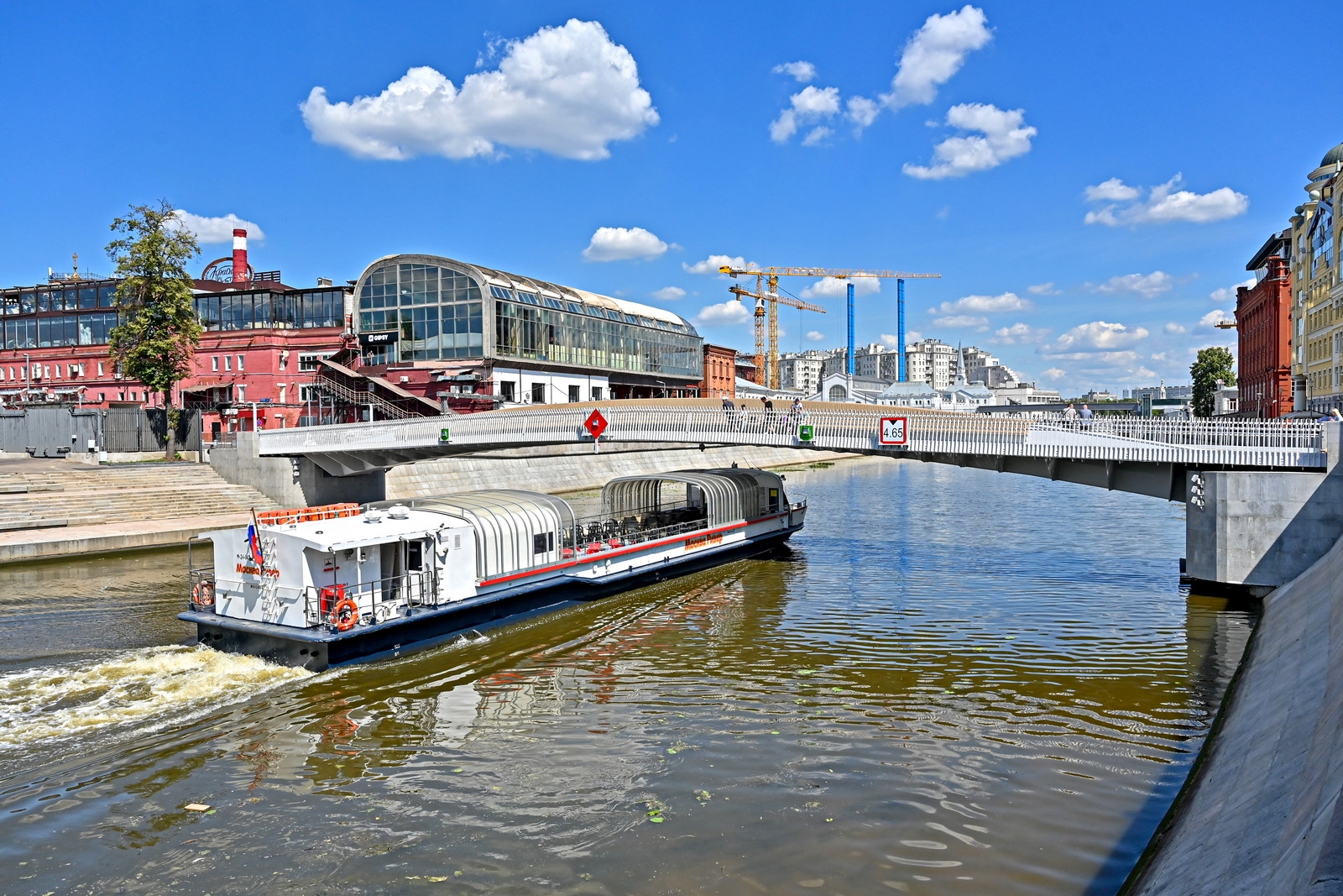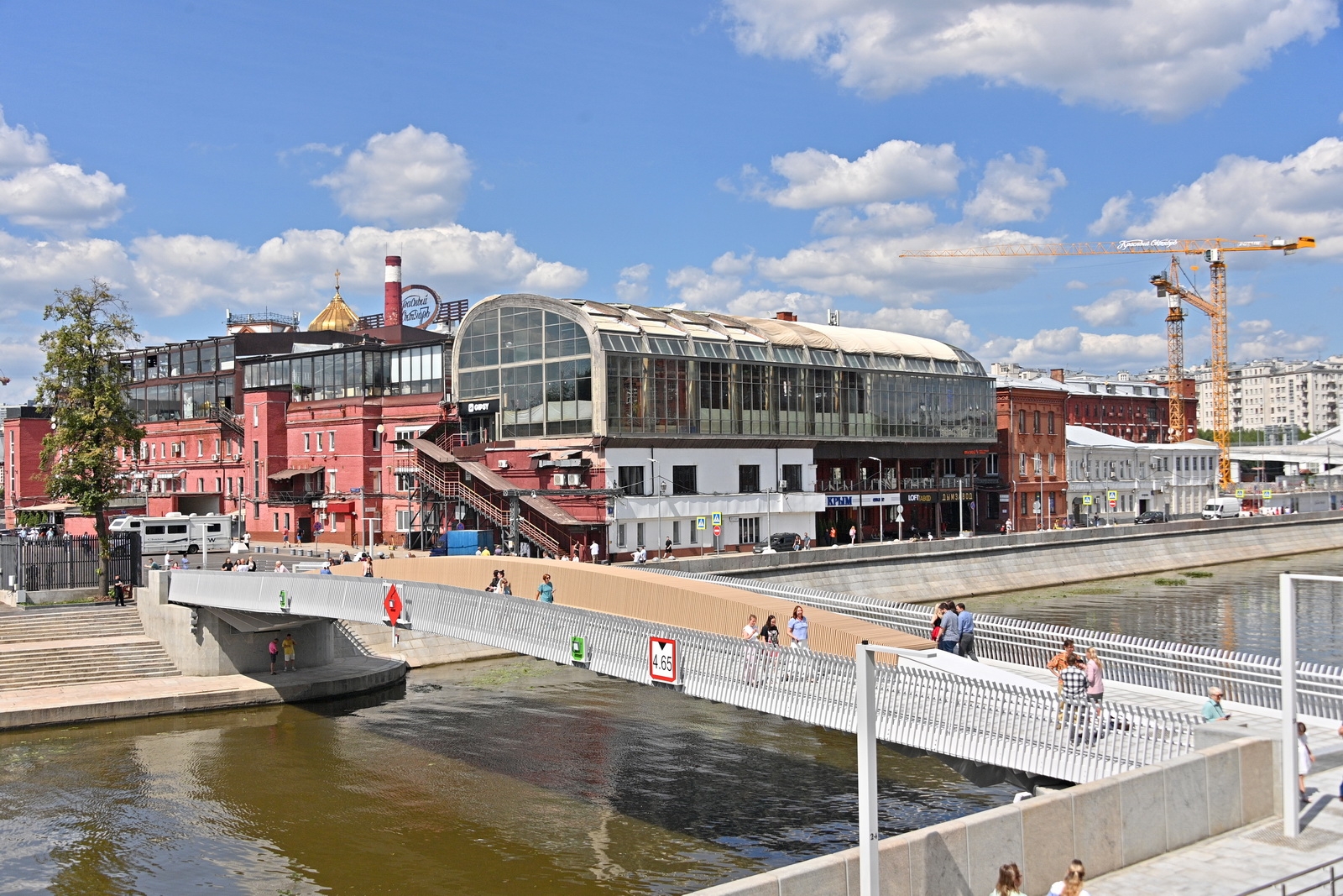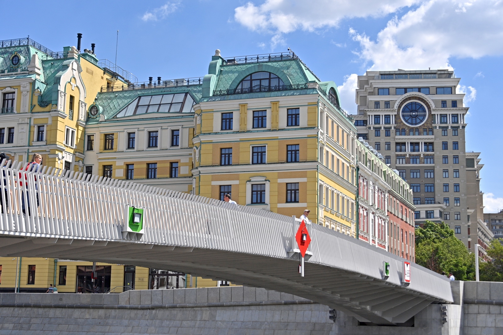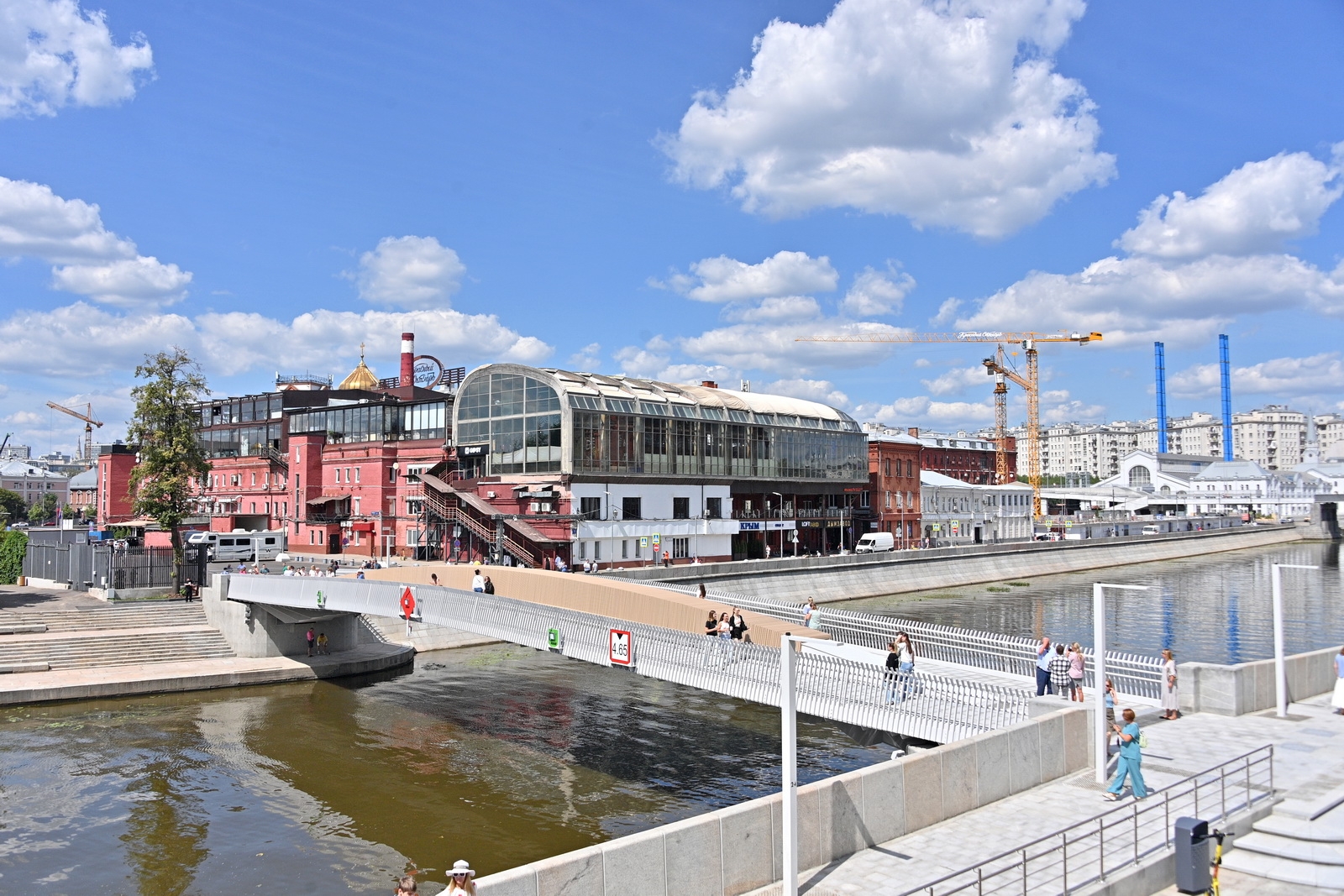 - пешеходный мост, соединивший стрелку острова Балчуг (Болотную набережную) с Крымской и Якиманской набережными;