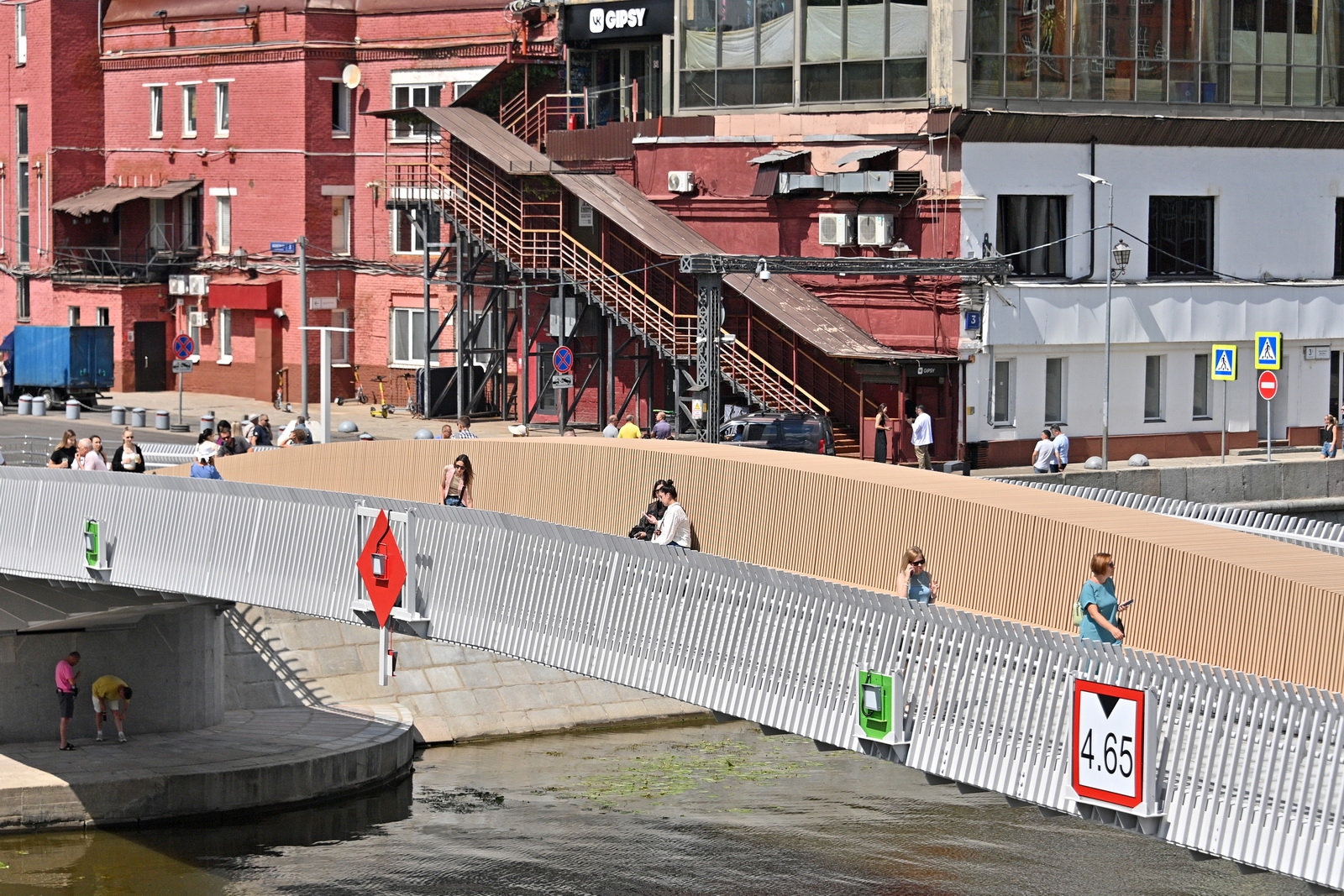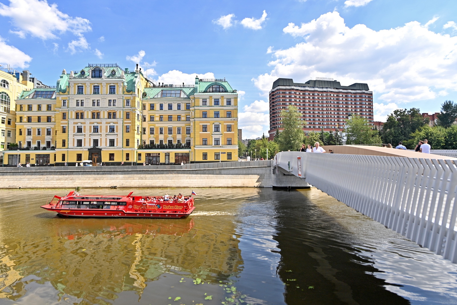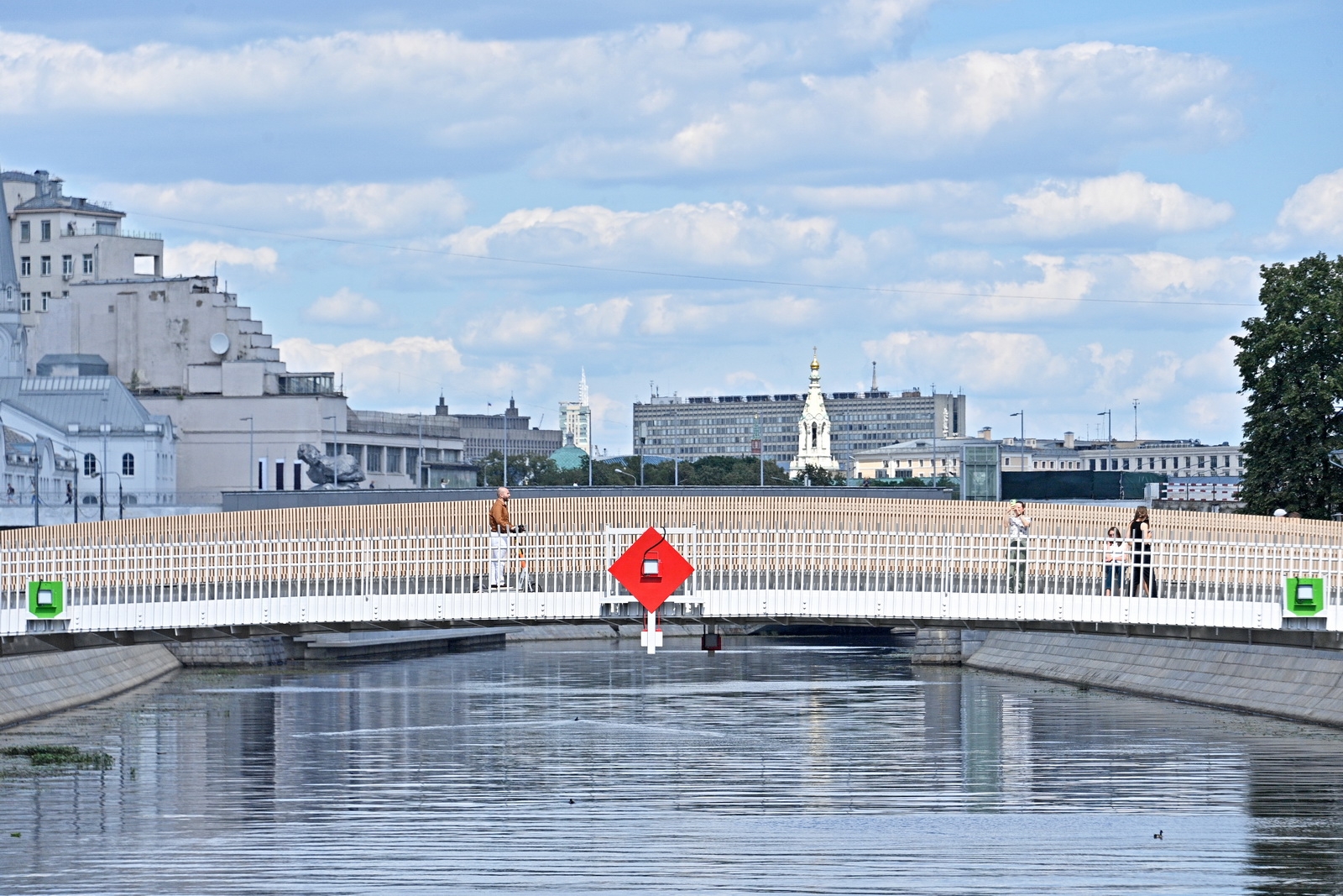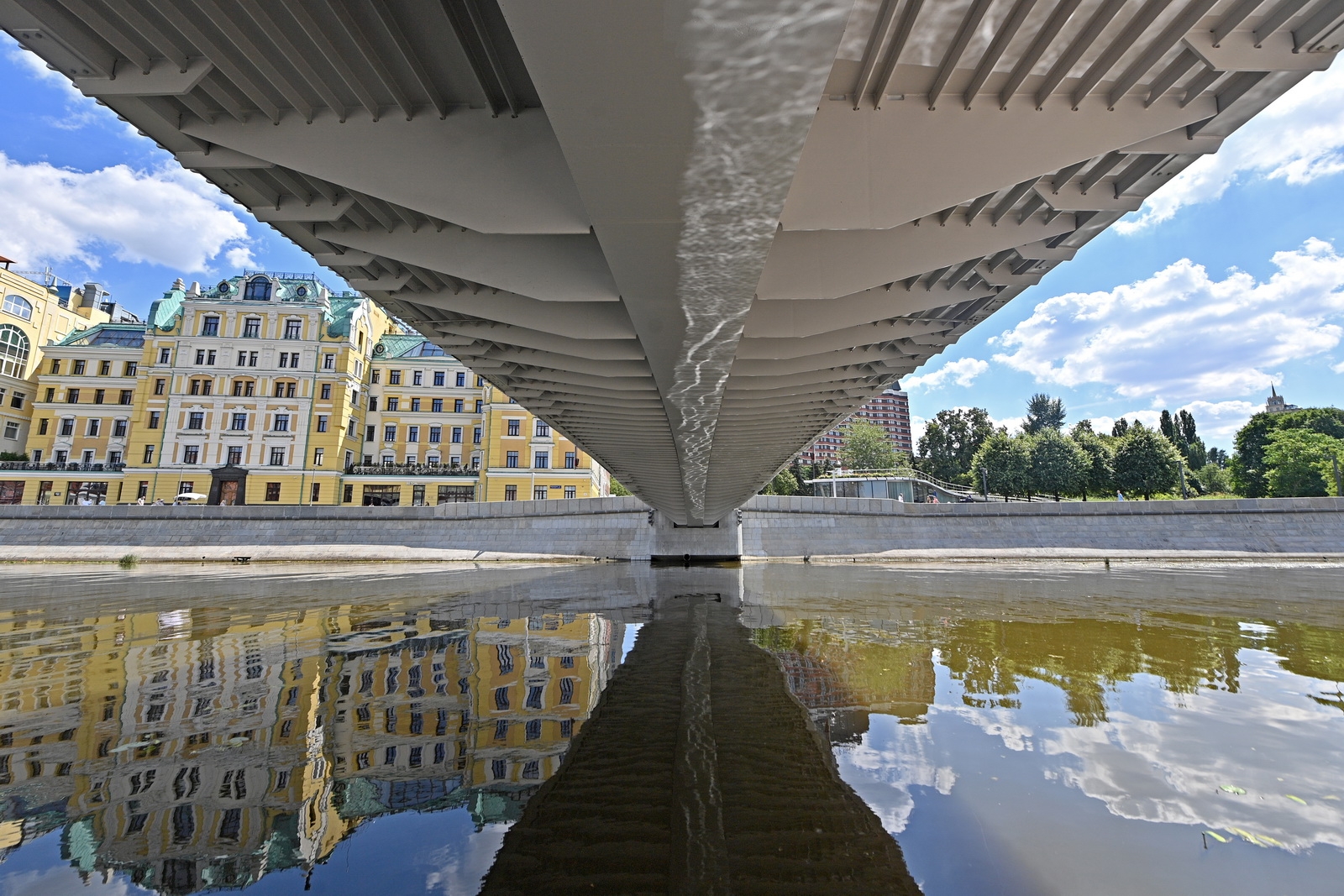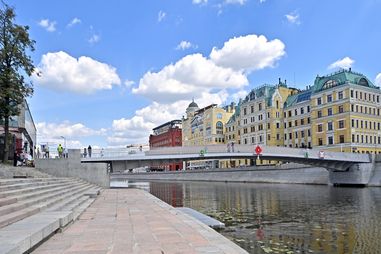 - пешеходный мост, соединивший стрелку острова Балчуг (Болотную набережную) с Крымской и Якиманской набережными;