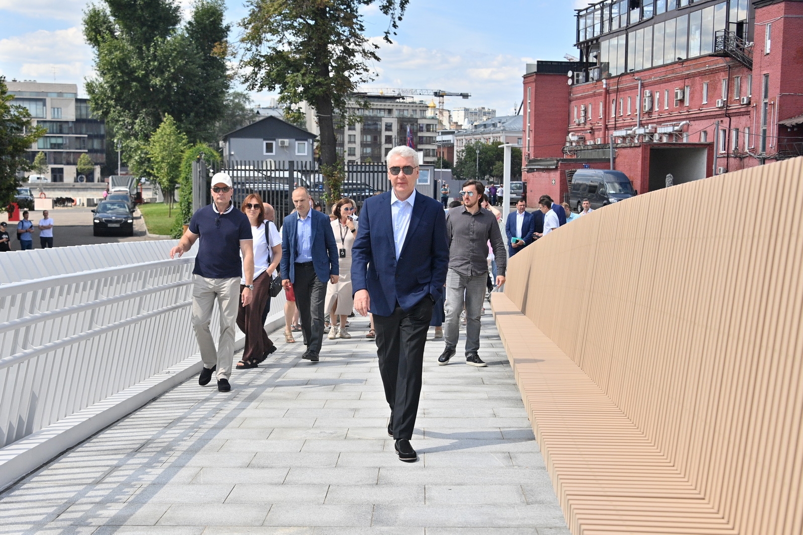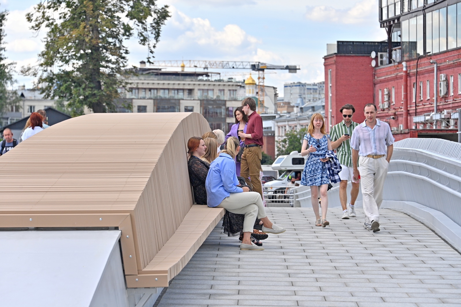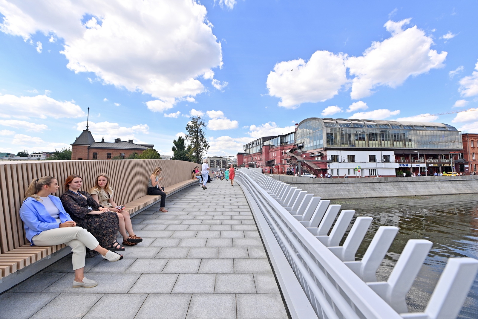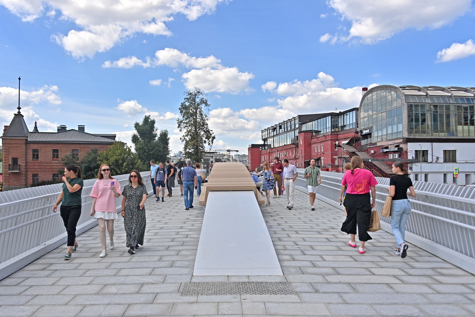 - пешеходный мост, соединивший стрелку острова Балчуг (Болотную набережную) с Крымской и Якиманской набережными;