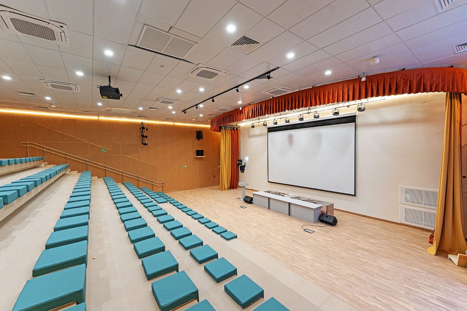 Все ключевые зоны имеют выход во внутренний двор, а коридоры и места для отдыха сформированы вокруг многофункционального многосветного пространства между первым и третьим этажами.