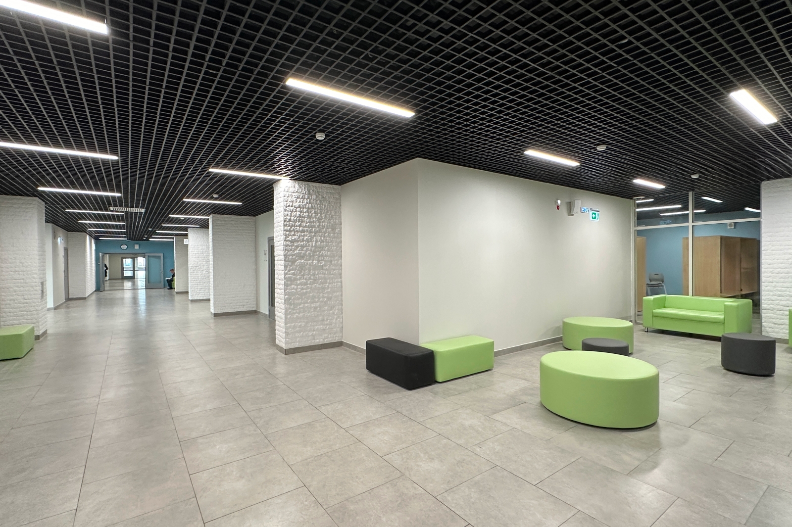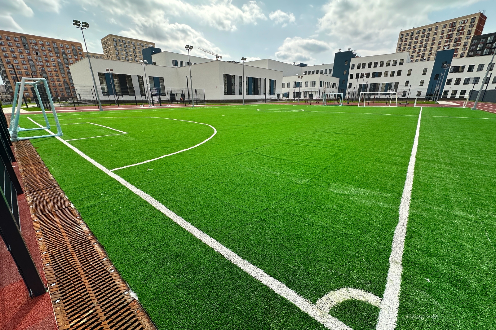 Строители предусмотрели большие спортивные блоки с залами для занятий физкультурой и гимнастикой, залы для проведения мероприятий. На прилегающих территориях разместили просторные школьные дворы со спортивной зоной и озеленением.