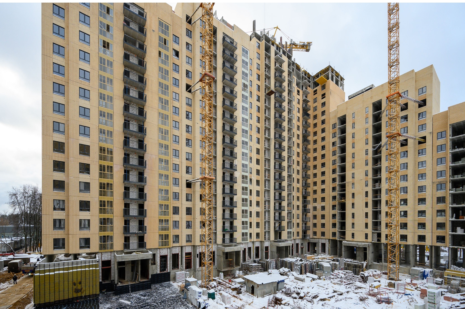 В новостройке по реновации в Южном Тушине монтируют фасад и кровлю