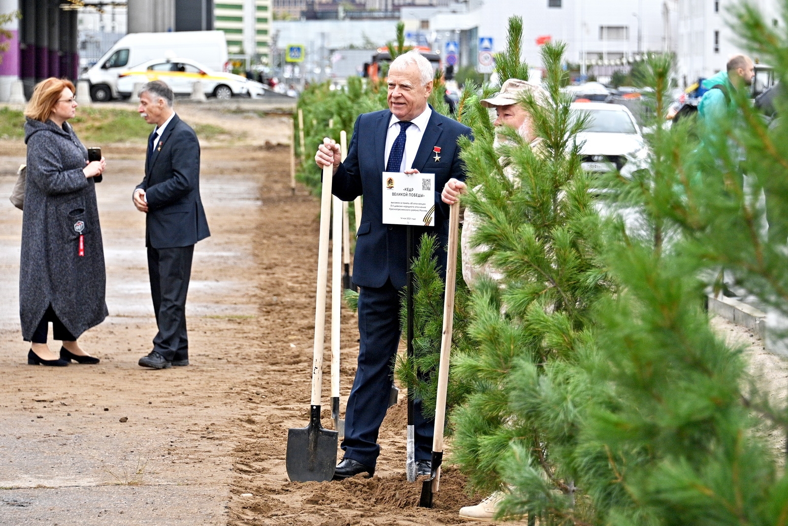 Аллея Славы создана сегодня в рамках акции «Кедры Великой Победы» на территории парка культуры и отдыха «Ходынское поле». Инжиниринговый холдинг «Мосинжпроект» выступил генеральным партнером мероприятия.
