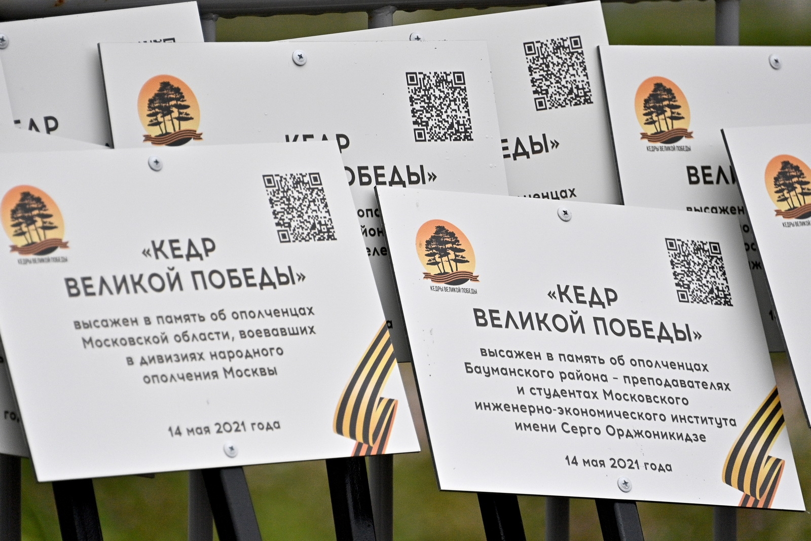 У каждого кедра установили табличку с реестровым номером и информацией о том, какой памятной дате или событию оно посвящается.