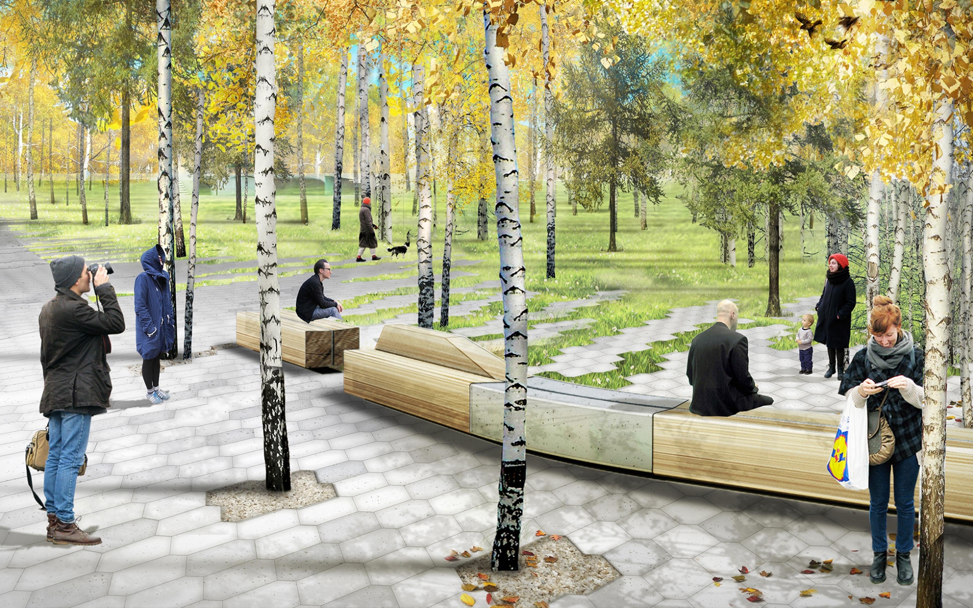 Лавочки сделают из природных материалов, преимущественно из дуба и камня. Все элементы будут российского производства. По вечерам светодиоды, встроенные в скамейки, будут подсвечивать дорожки.