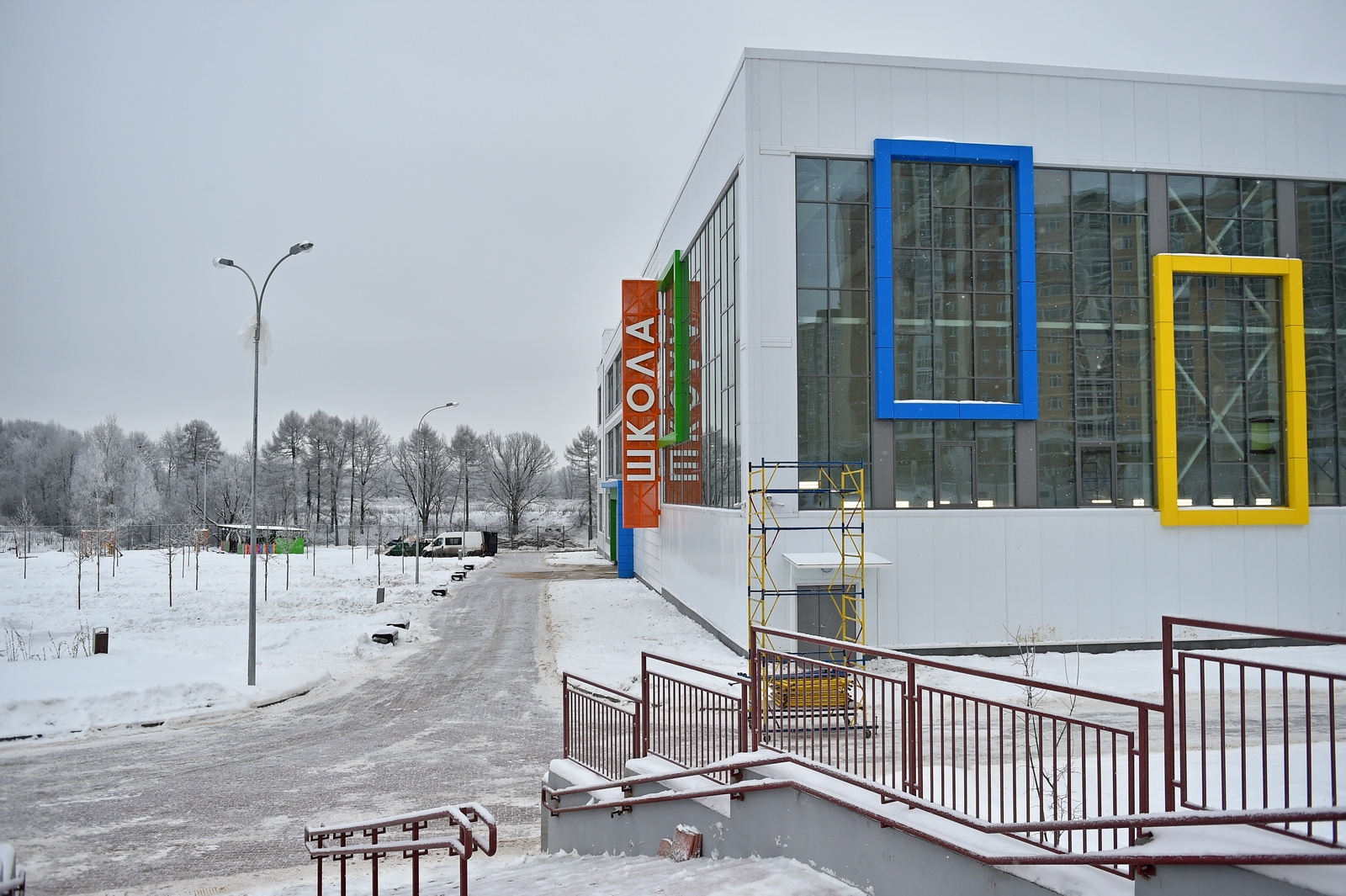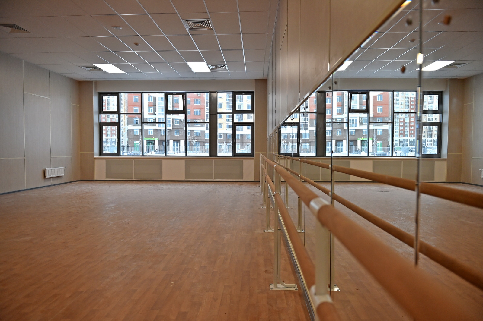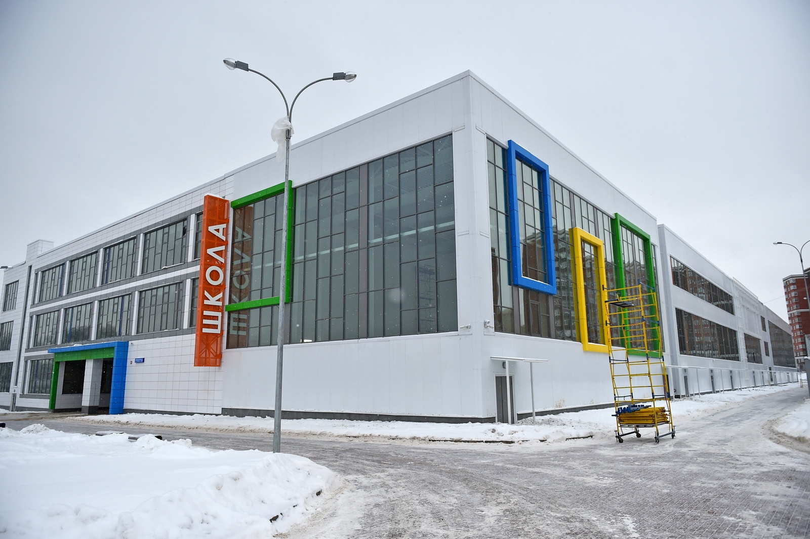 В здании есть спортзалы и бассейн. Спортивные объекты на пришкольной территории доступны всем жителям Коммунарки.