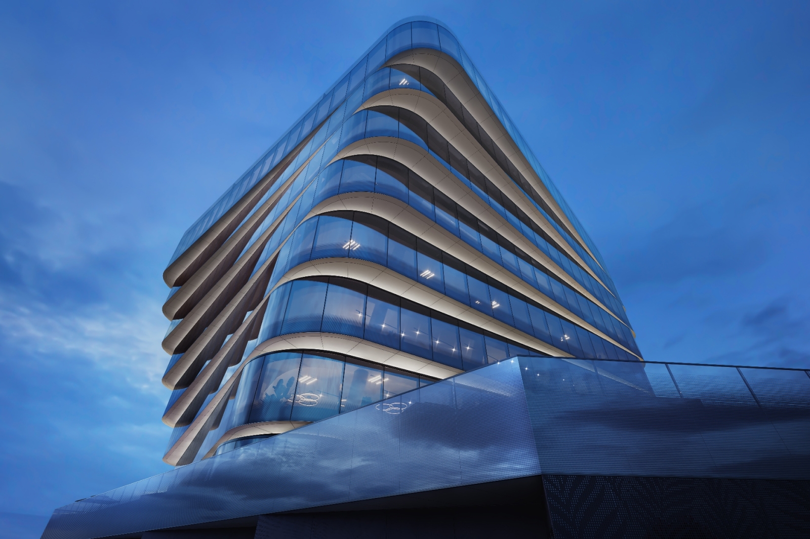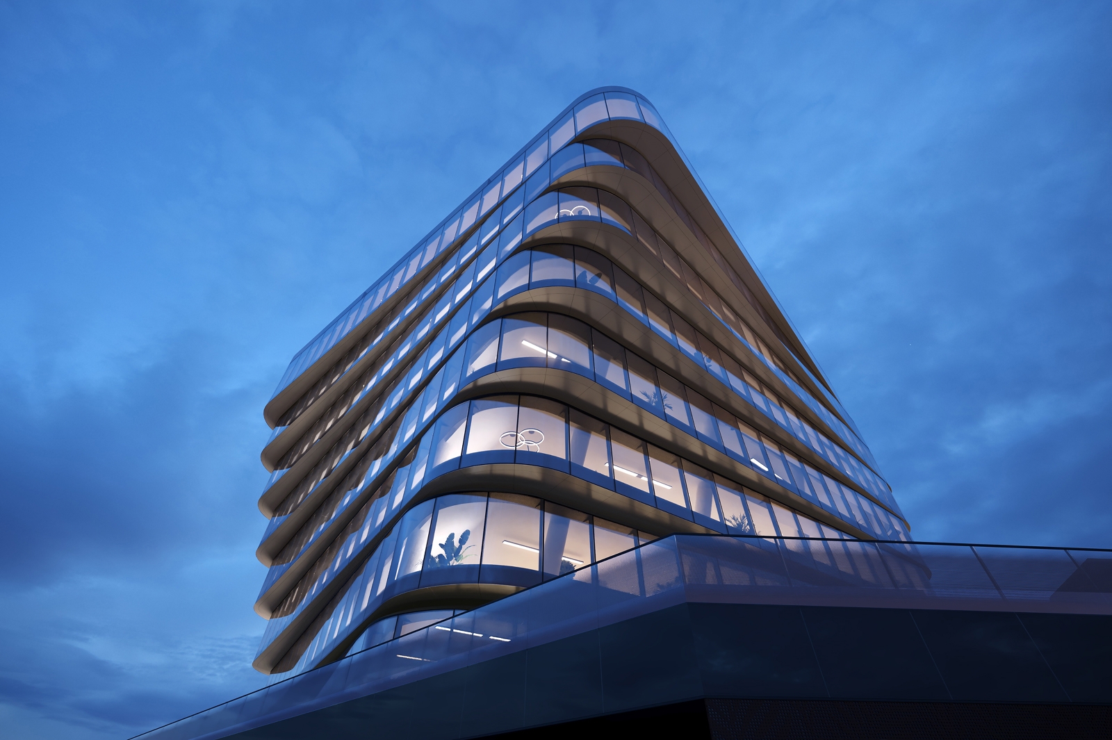 «На фасадах используют моллированное панорамное остекление, которое придаст зданию футуристичный и запоминающийся облик. В вечернее время его дополнит архитектурная подсветка», – пояснил Сергей Кузнецов.