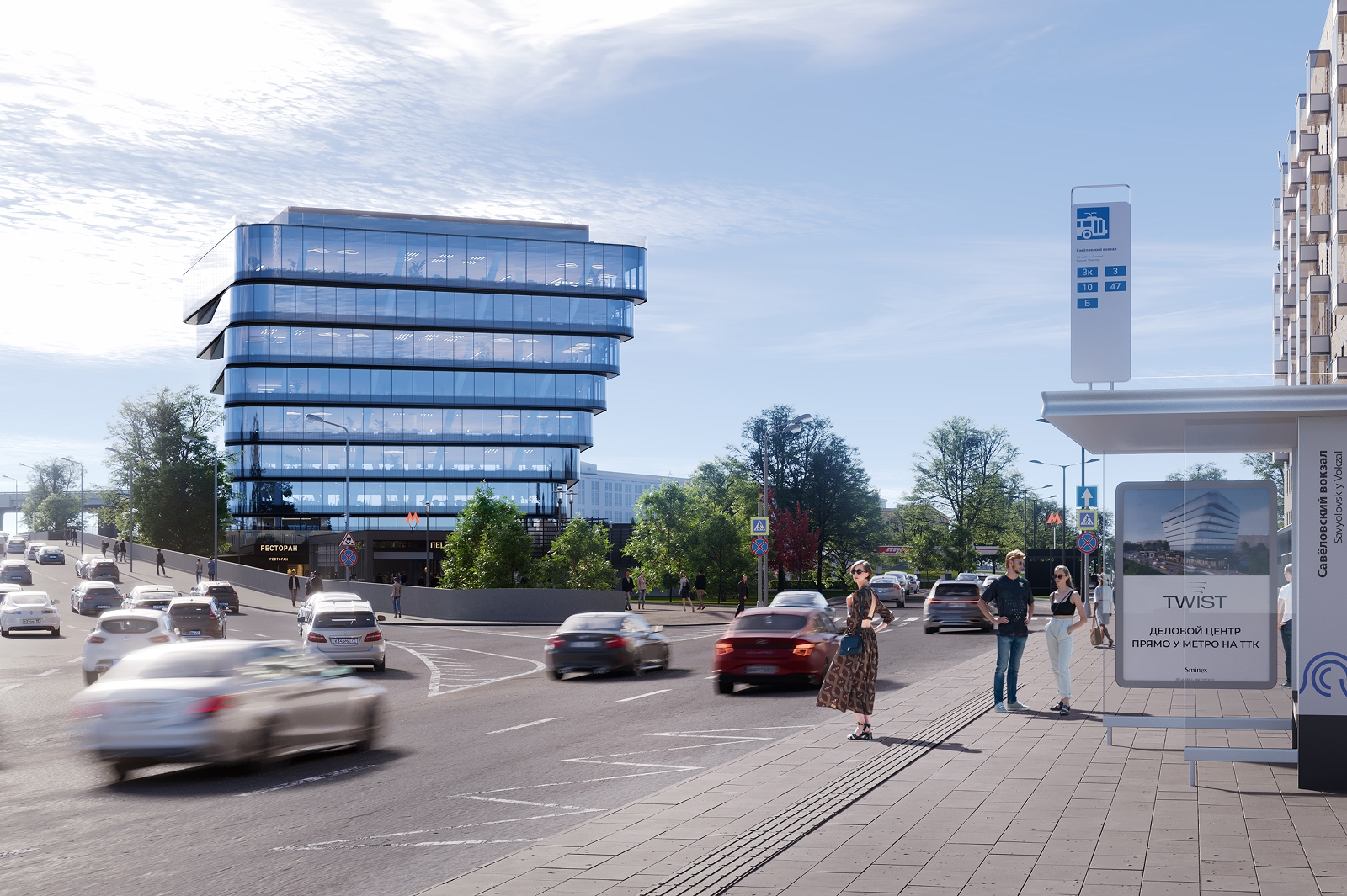 Разрешение на возведение девятиэтажного офисного центра Twist действует до 2026 года. Девелопер – компания Sminex. Архитектурная концепция комплекса разработана бюро ADM.