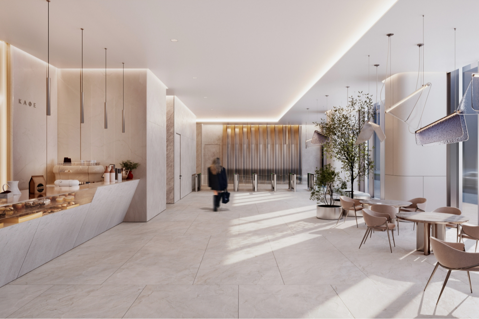 В бизнес-центре установят 11 скоростных лифтов. Между третьим и четвертым этажами запроектировано техническое пространство для инженерных коммуникаций.