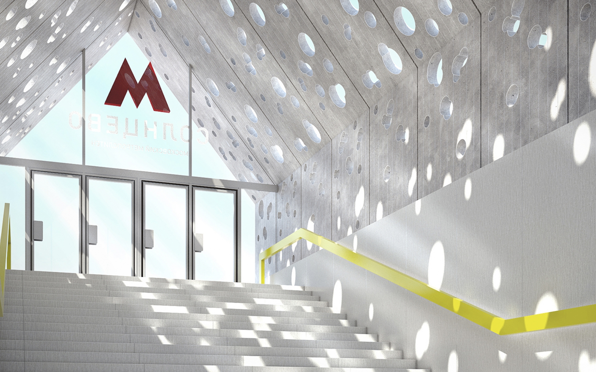 Станция «Говорово» выполнена в стиле хай-тек: в архитектурной отделке преобладают черные цвета, а освещение смонтировано в трех параллельных плоскостях с применением светильников типа Тренд-Контур, изготовленных по индивидуальному заказу.