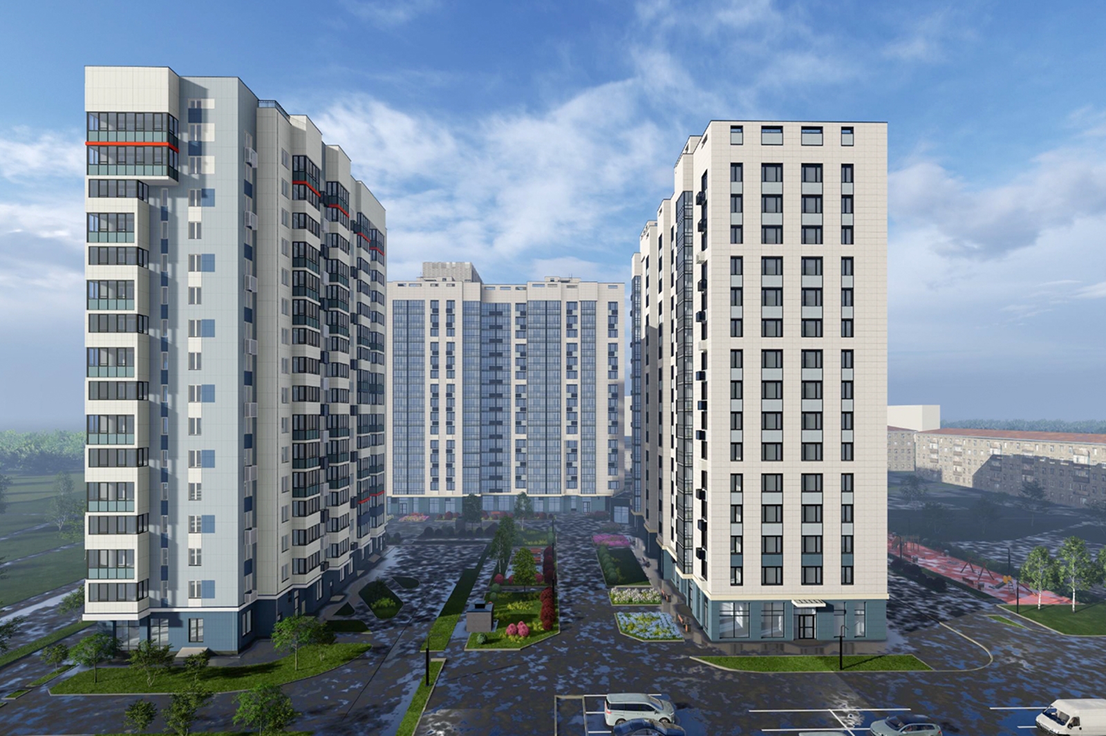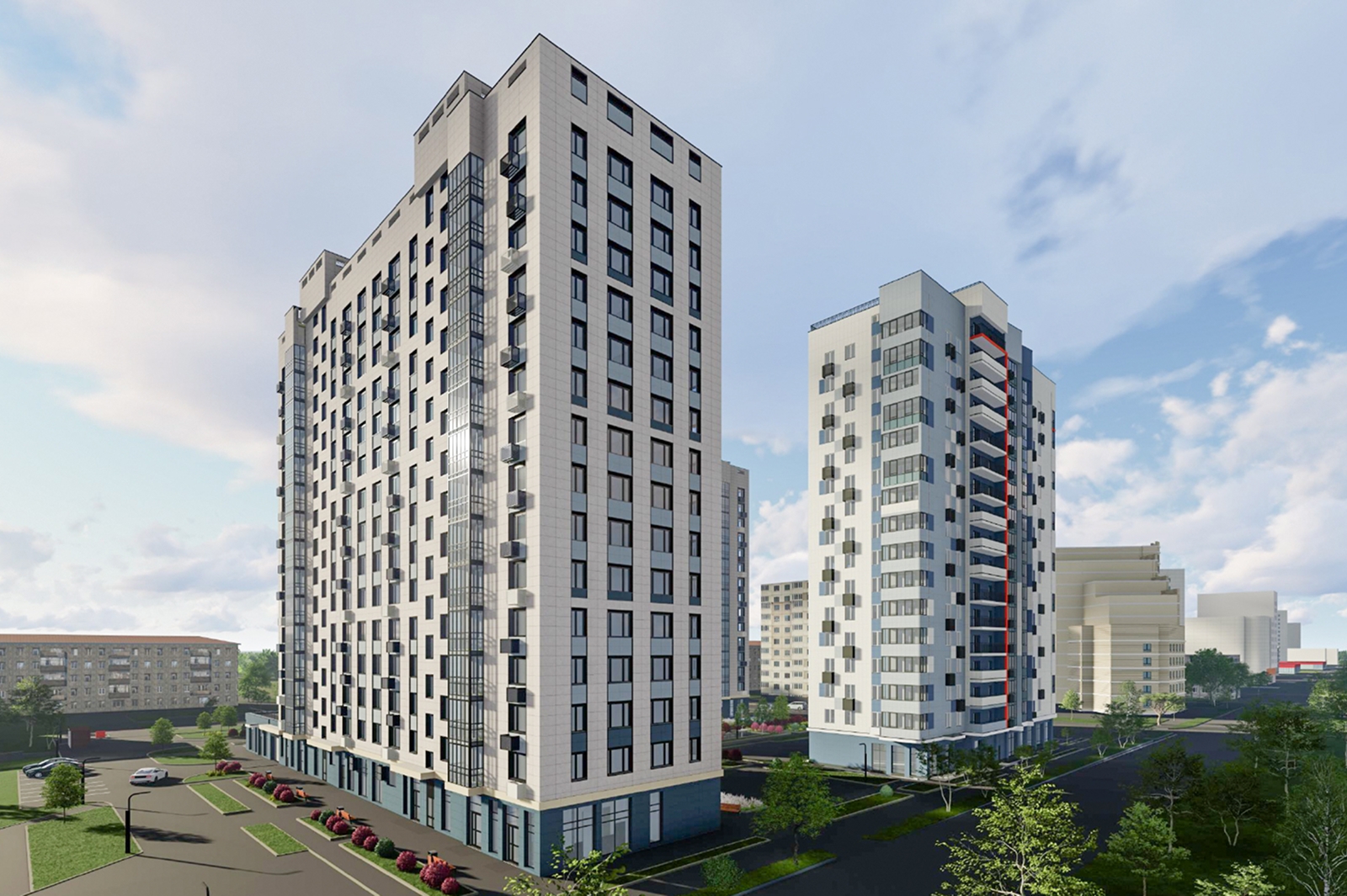 Фасады выполнят из навесных стеновых панелей, облицованных керамогранитной плиткой. На них установят корзины для внешних блоков кондиционеров, а подъезды оформят витражным остеклением.