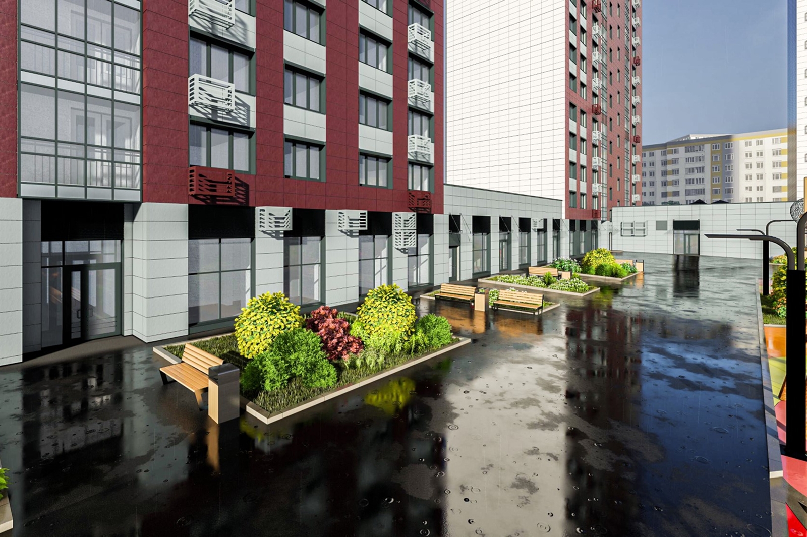 Территорию вокруг дома благоустроят – сделают новые проезды, широкие тротуары и пешеходные дорожки, оборудуют детские площадки с игровым комплексом и пространство для занятий спортом с тренажерами.
