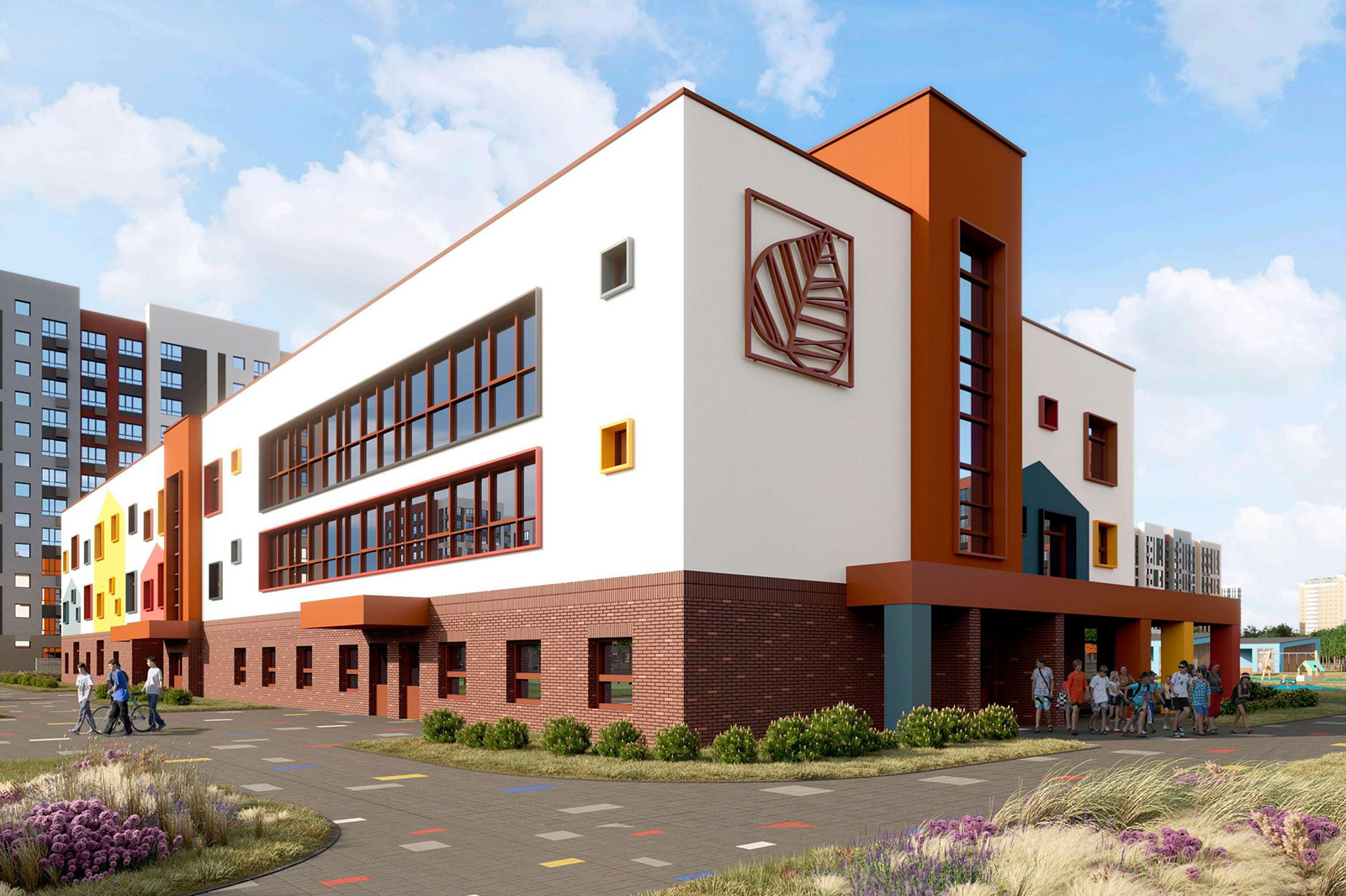 Отделка фасада будет выполнена в том же стиле, что и другие детские сады, возведенные застройщиком в микрорайоне. На территории учреждения оборудуют спортивную и игровые площадки со специальным покрытием.