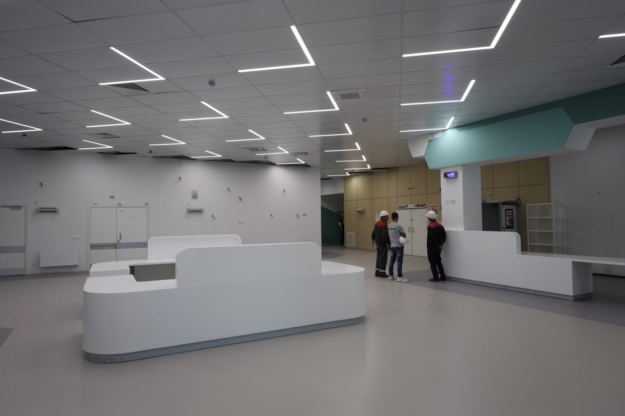 Руководитель проекта АНО «РСИ» (государственный застройщик) Сергей Кочковский пояснил, что во флагманском центре уже готовы инженерные сети и системы, смонтирован крытый пешеходный переход, соединяющий новое здание с другими корпусами больницы. Завершается отделка, монтаж оборудования и благоустройство территории, ведутся пусконаладочные работы. Он подчеркнул, что медицинское учреждение оснастят самым современным оборудованием.