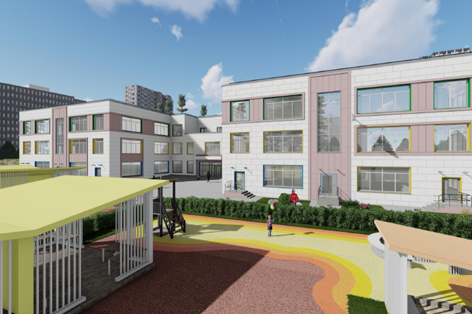 В учреждении организуют 14 групп. Предусмотрены залы для музыкальных и физкультурных занятий, кружковая, медицинский кабинет с процедурной и пищеблок.