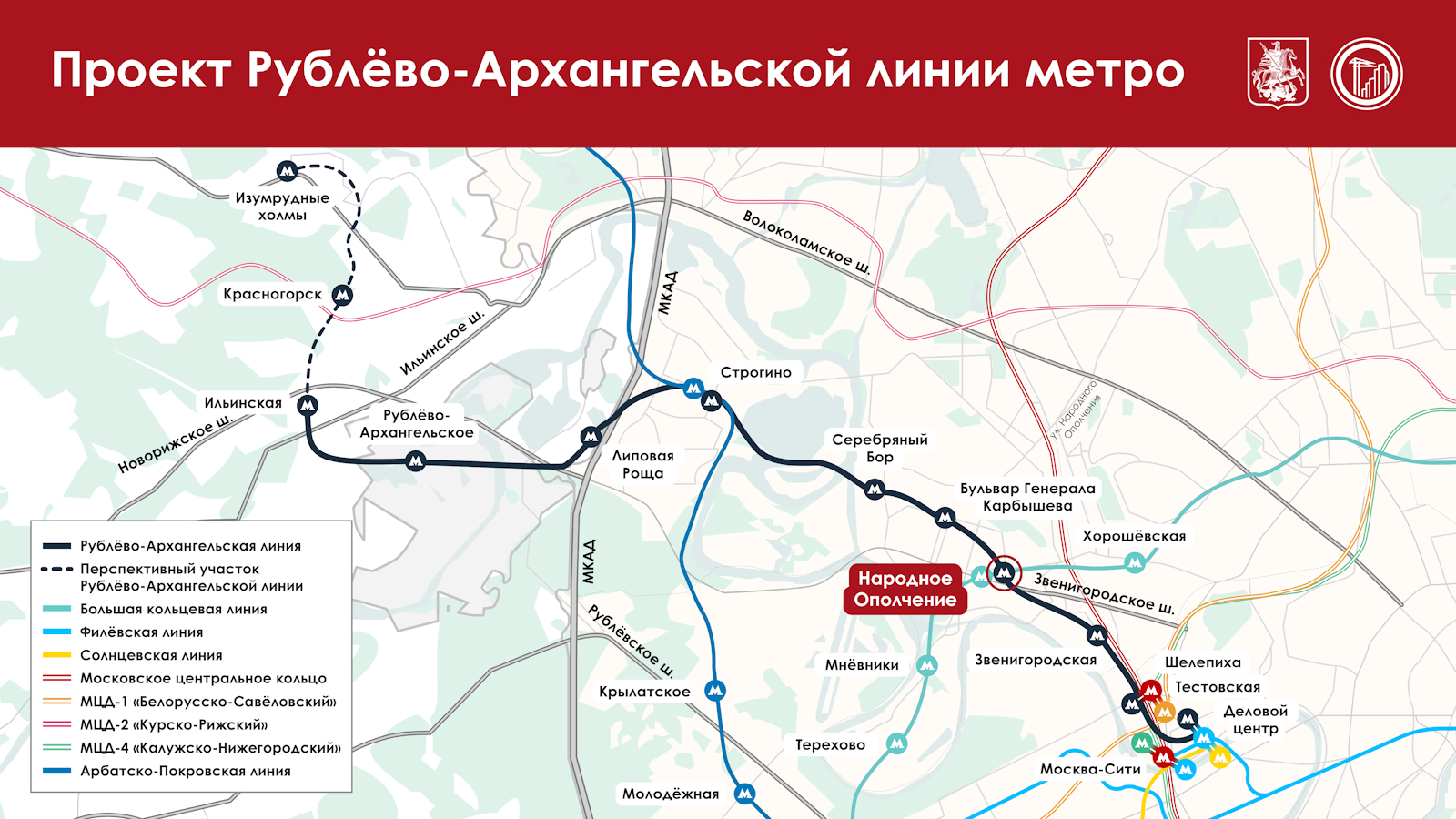 Новая ветка свяжет активно развивающуюся территорию в Рублёво-Архангельском с БКЛ и деловым центром «Москва-Сити».