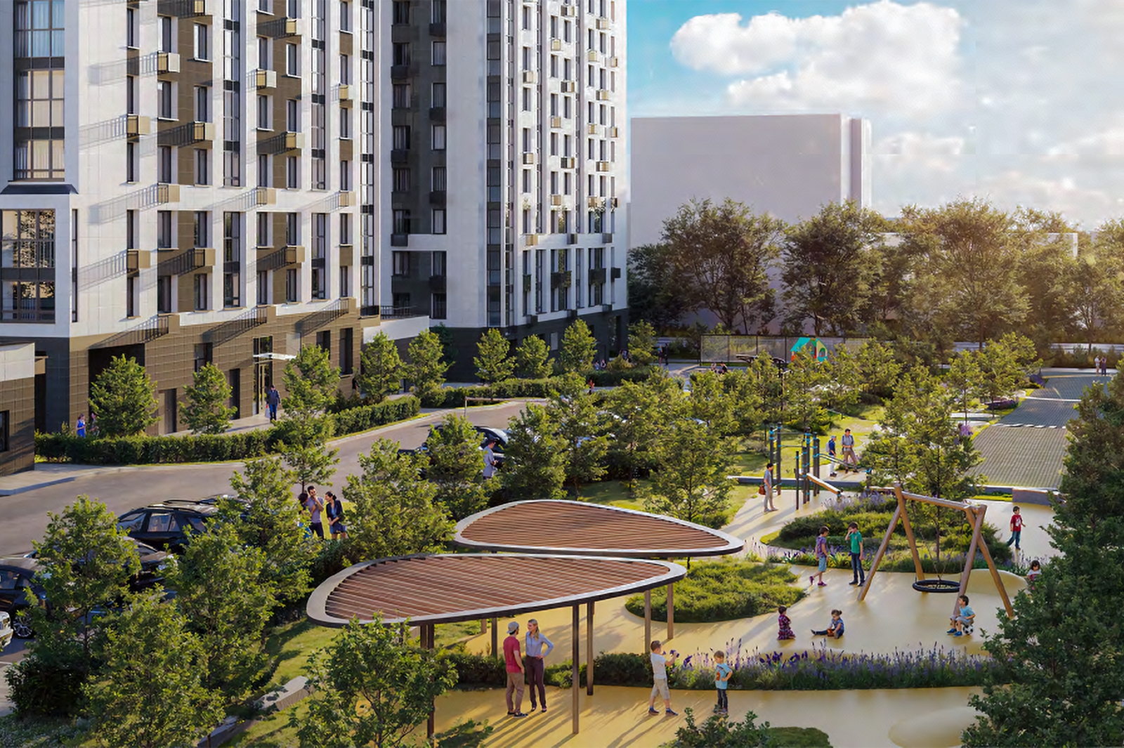 Придомовую территорию комплексно озеленят и благоустроят, там разместят детские и спортивные площадки для активного отдыха.